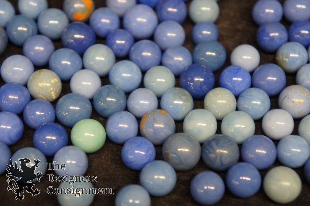 116 Vintage Machine Made Opaque Shades of Blue Glass Marbles Player Toys Games
