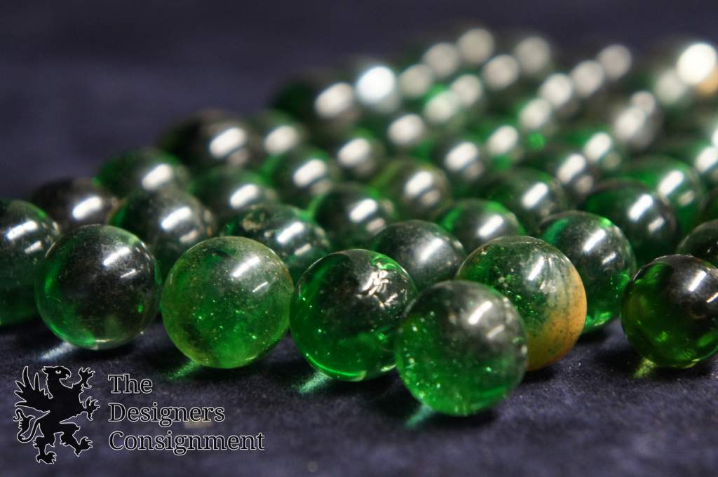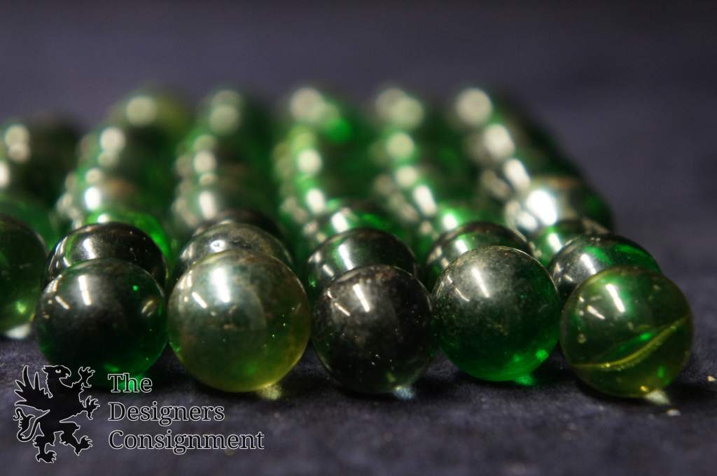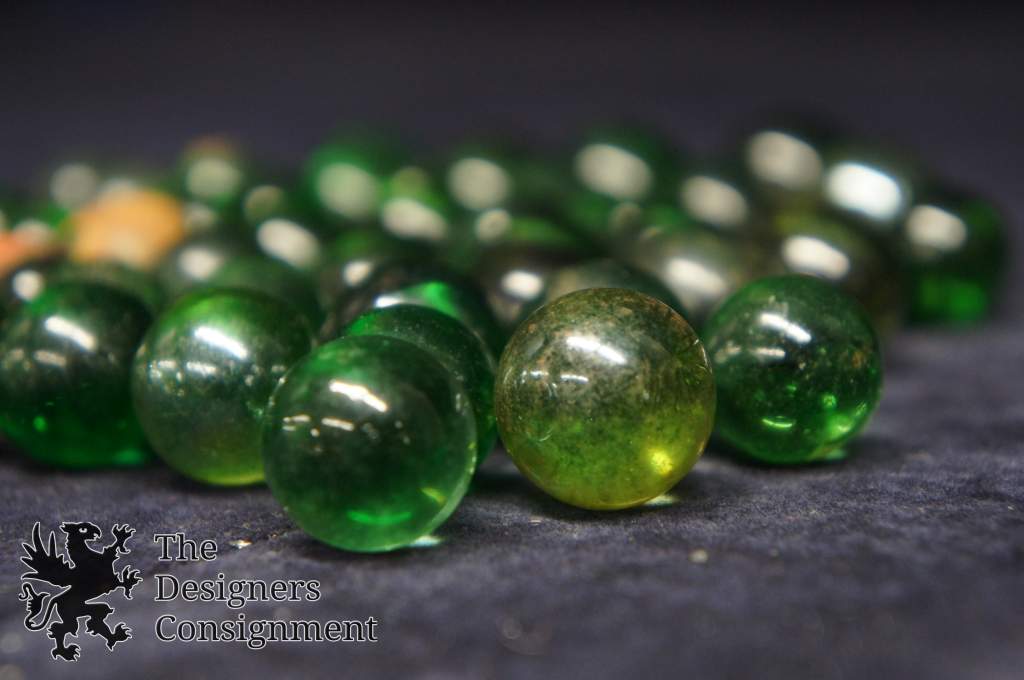57 Vintage Machine Made Shades of Green Colored Clear Glass Marbles Clary Toys