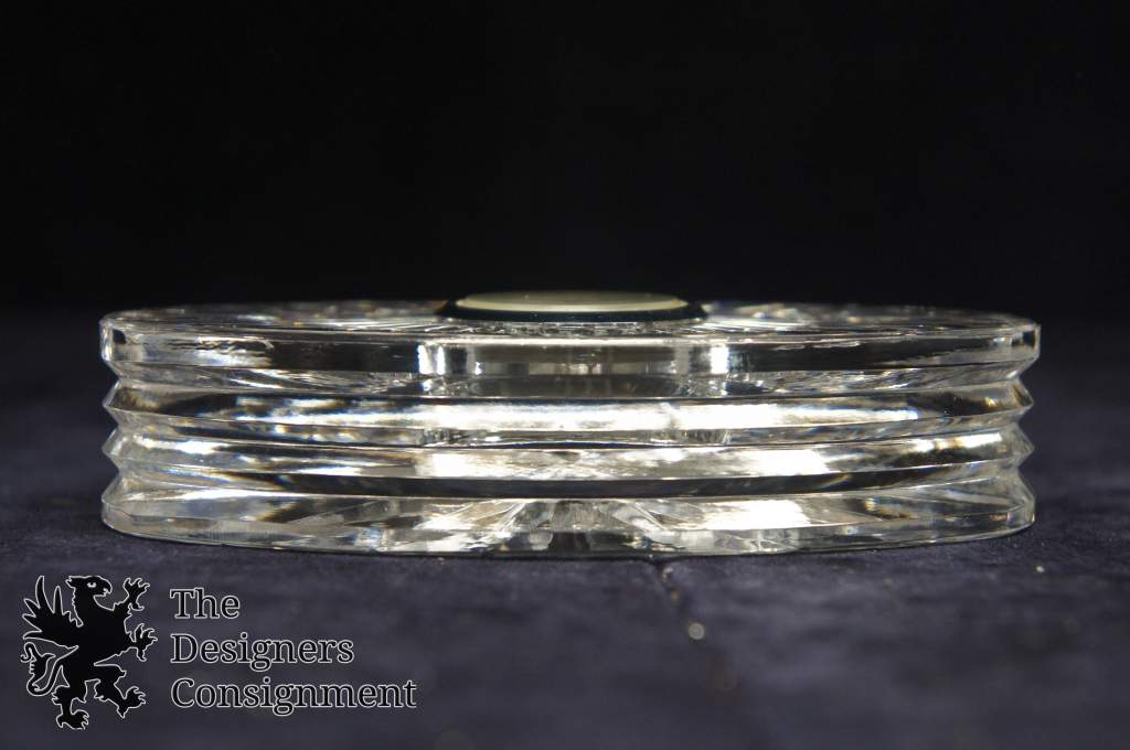 Waterford Crystal Small Oval Battery Operated Desk Clock Glass Sunburst Mantel