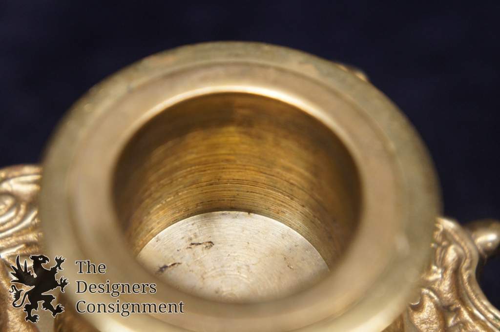 Antique Solid Brass Inkwell Embossed Scallop Shells Round w/ Square Base Ornate
