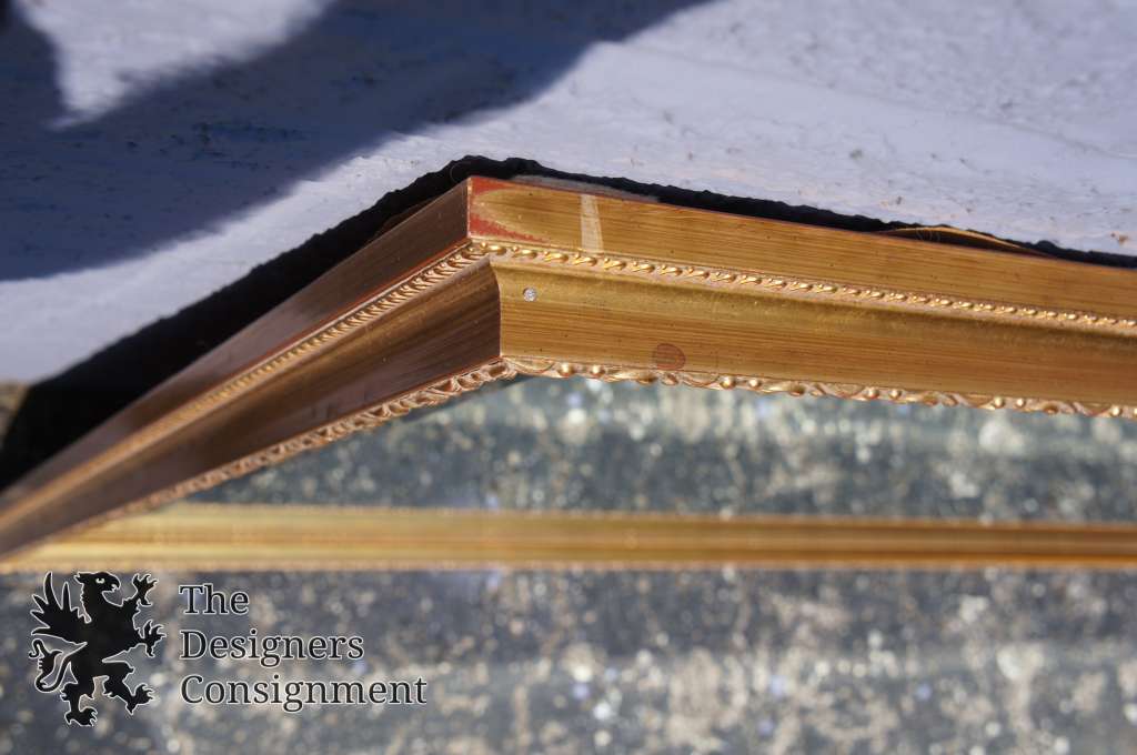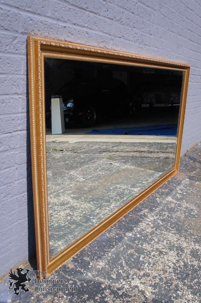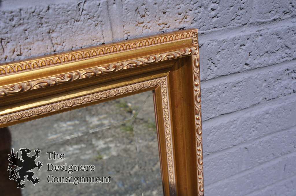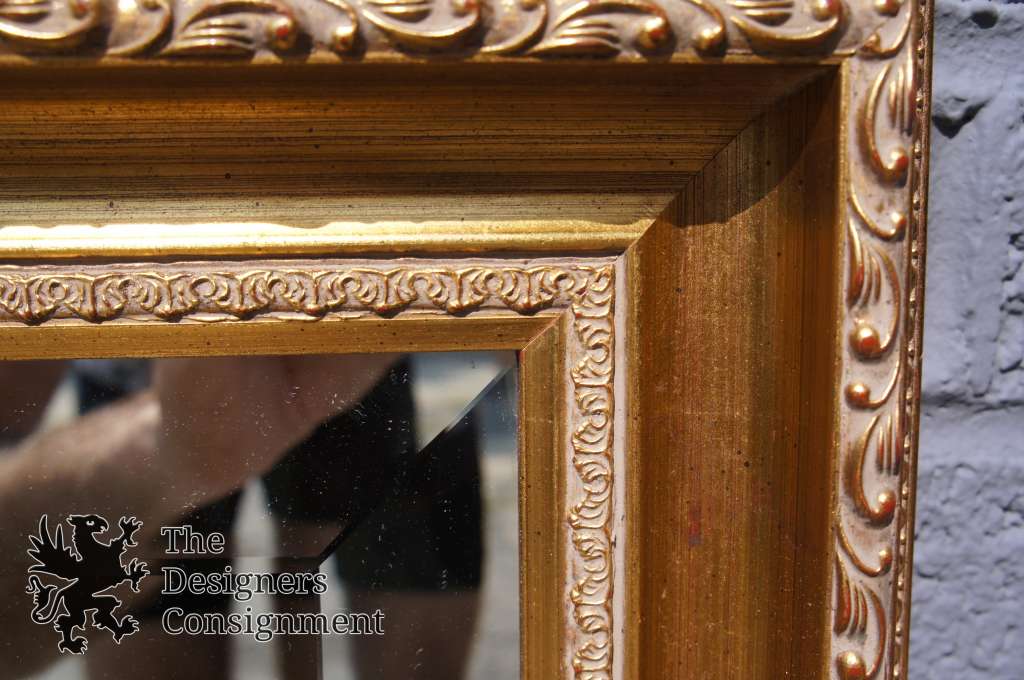 AGorgeousVictorian/ Regency style wall hanging mirror. Capable of being placed vertical or horizontal. Perfect for above your buffet or sideboard. Features a 3 layered edge with 2 floral trims and an outer gadrooned edge. Mirror is beveled. In addition to being used as a wall hanging mirror this piece would also be leaned against a wall as a floor mirror.