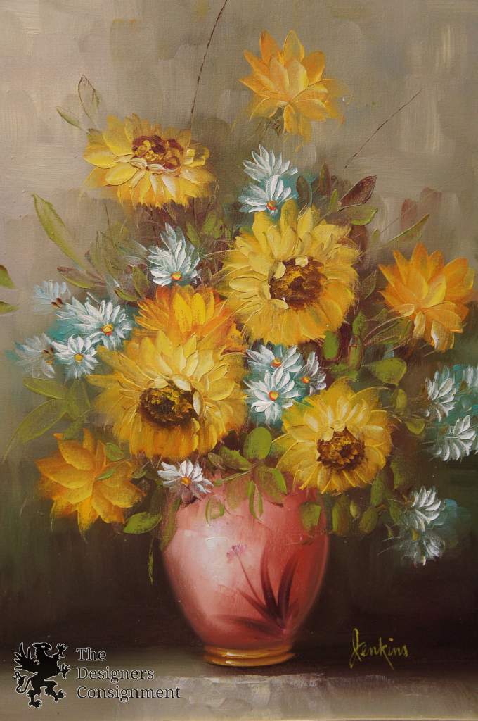 A beautiful Still Life Signed Jenkins. We attribute this piece to Gary Jenkins of California/ Nevada. Gary is know for florals, birds and tropical fish. In addition he is an art teacher. Signed along the lower right with a beautiful gold toned frame.