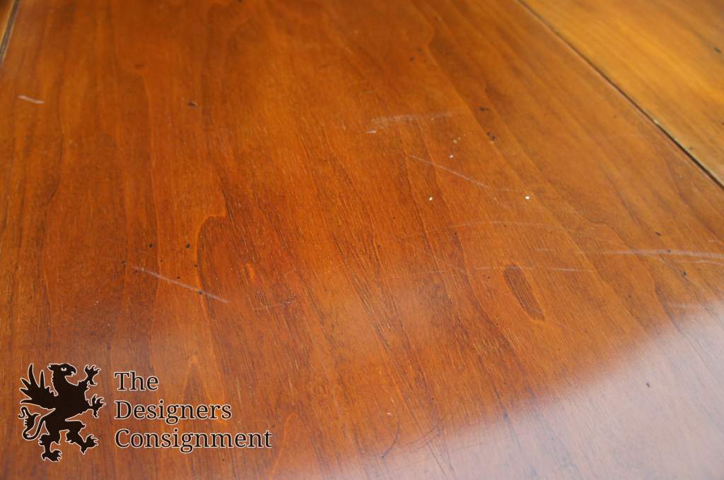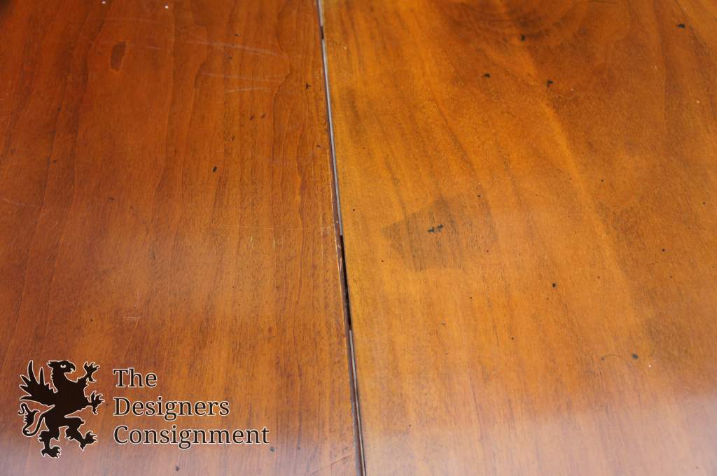 Gently Used - Leaves Darker than Table from being stored; Some Scratches from Use. Marks along the edge of one leaf.