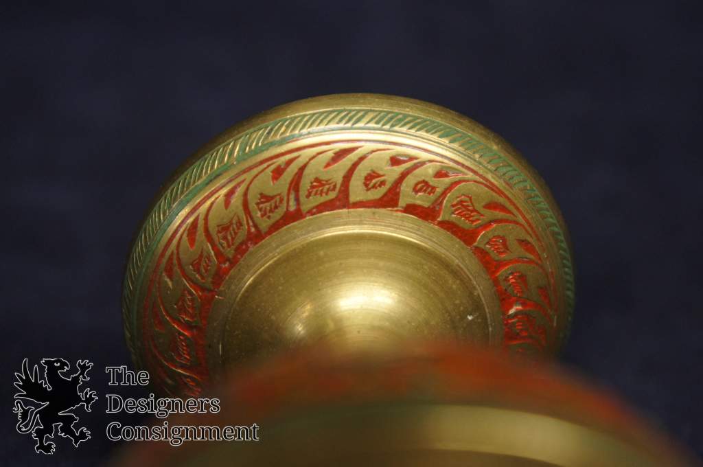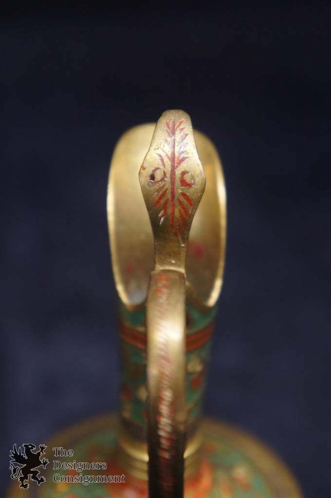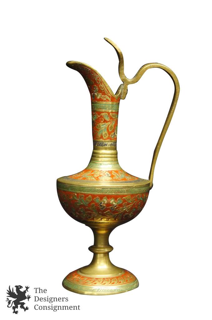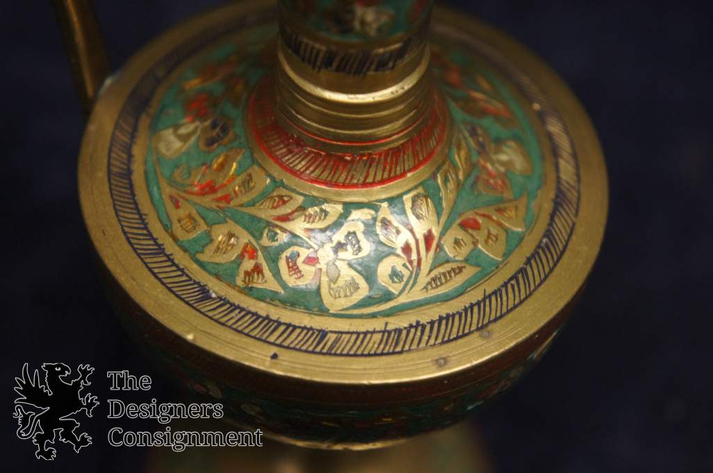 2 Colorful India Brass Pitcher Urns Vases Embossed Floral Design Harilela's 122