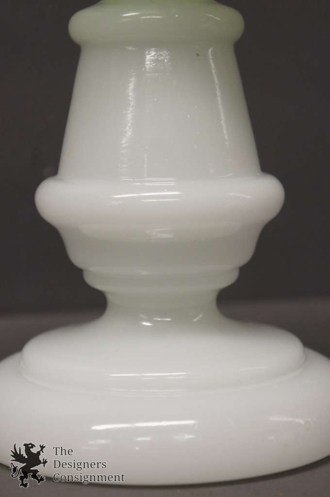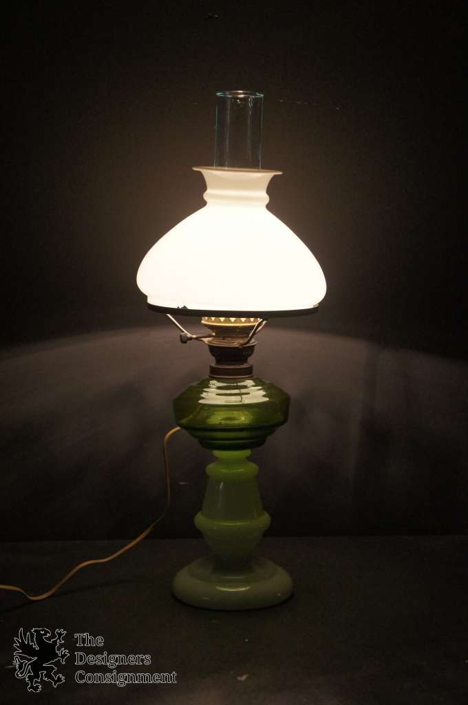 Antique Victorian Hurricane Oil Lantern Table Lamp Olive Green Milk Glass Light