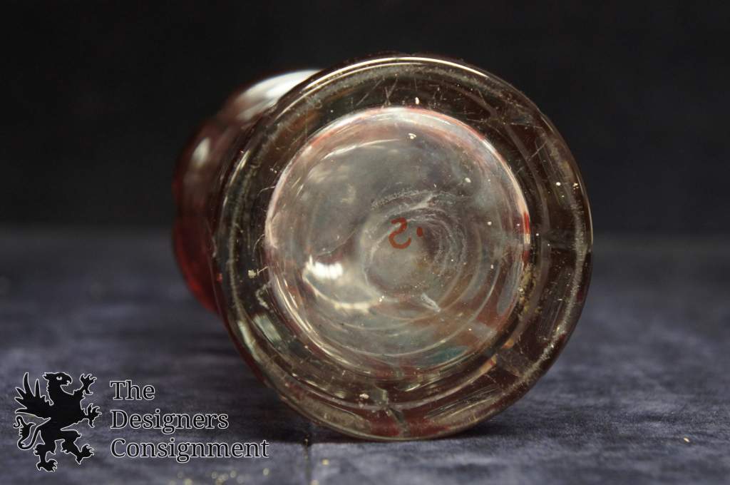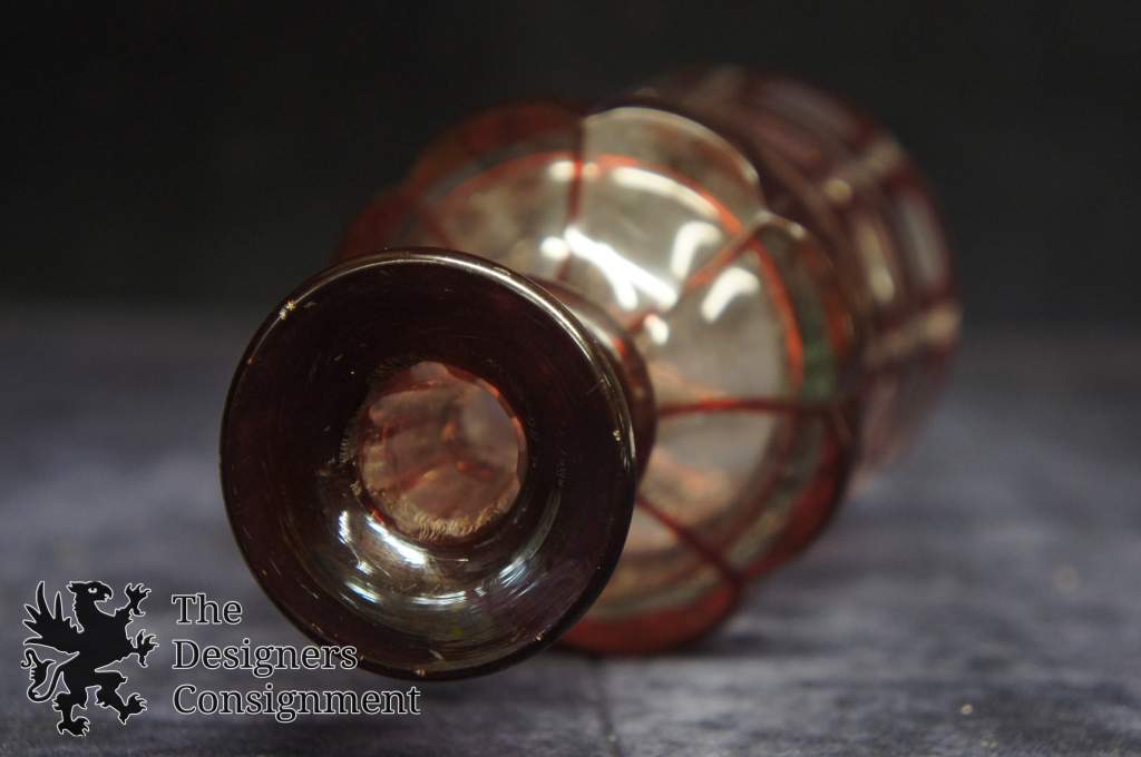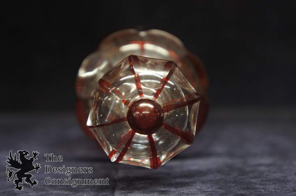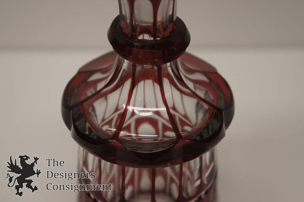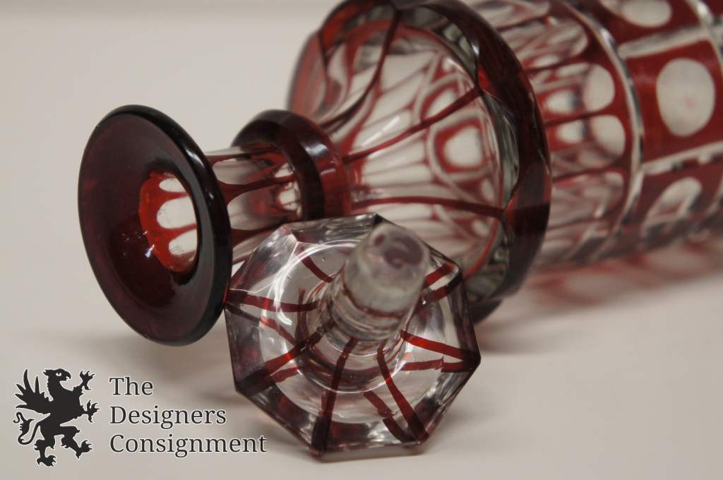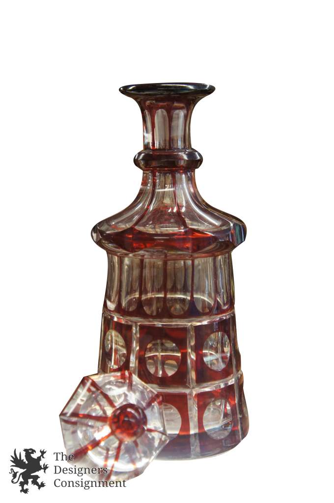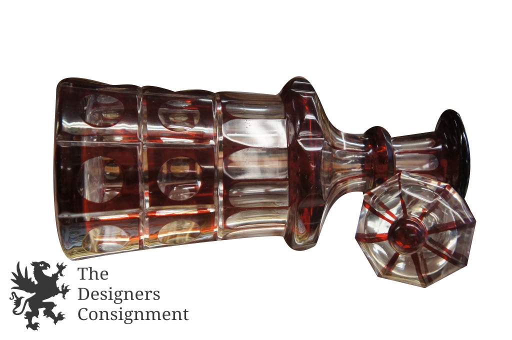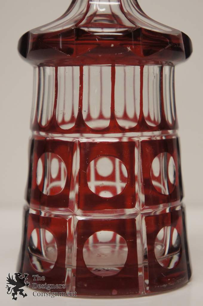 A gorgeous Bohemian decanter. Made from crystal with a geometric square and circular pattern. Perfect fir any bar setting. Topper features a umbrella shaped design.