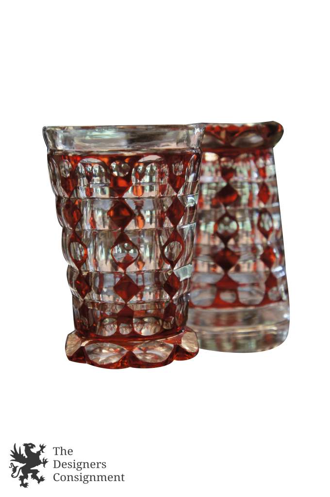 Beautiful pair of Bohemian cut to clearbar-warecups. Amazing color and detail. The perfect addition to any setting.