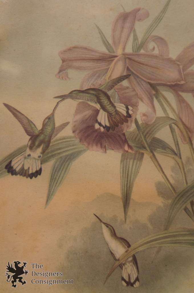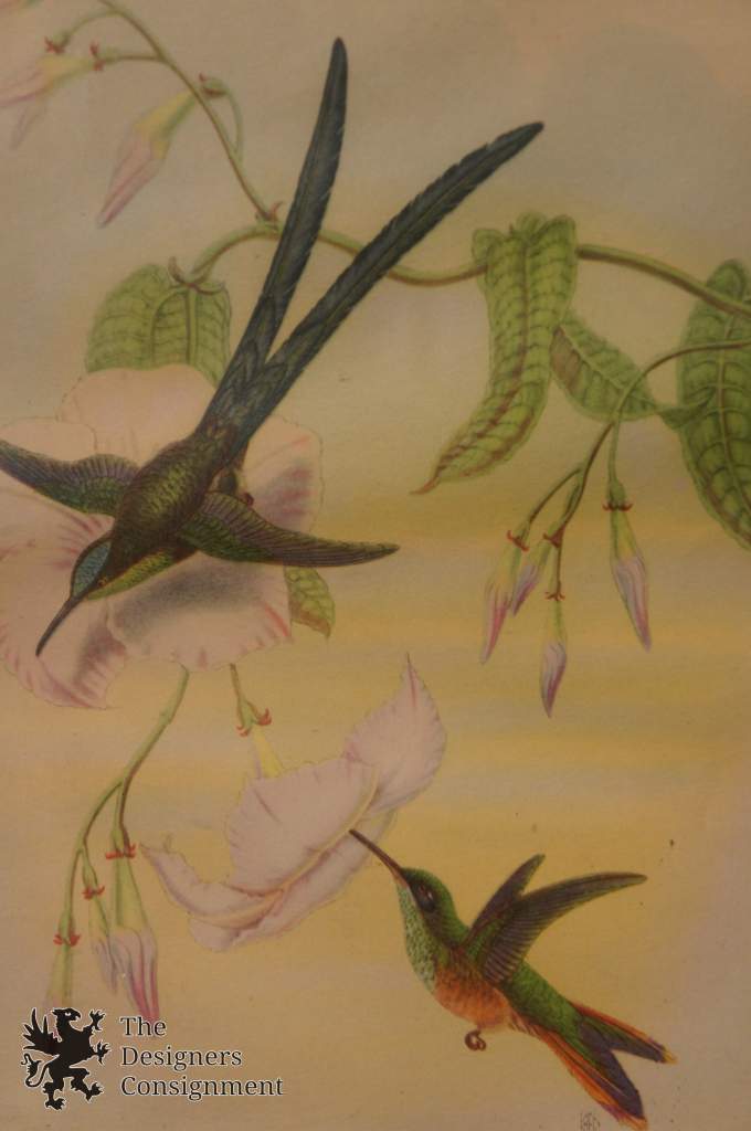 2 IBF Co Framed Lithograph Hummingbirds and Flowers Floral Pair Mid Century 14