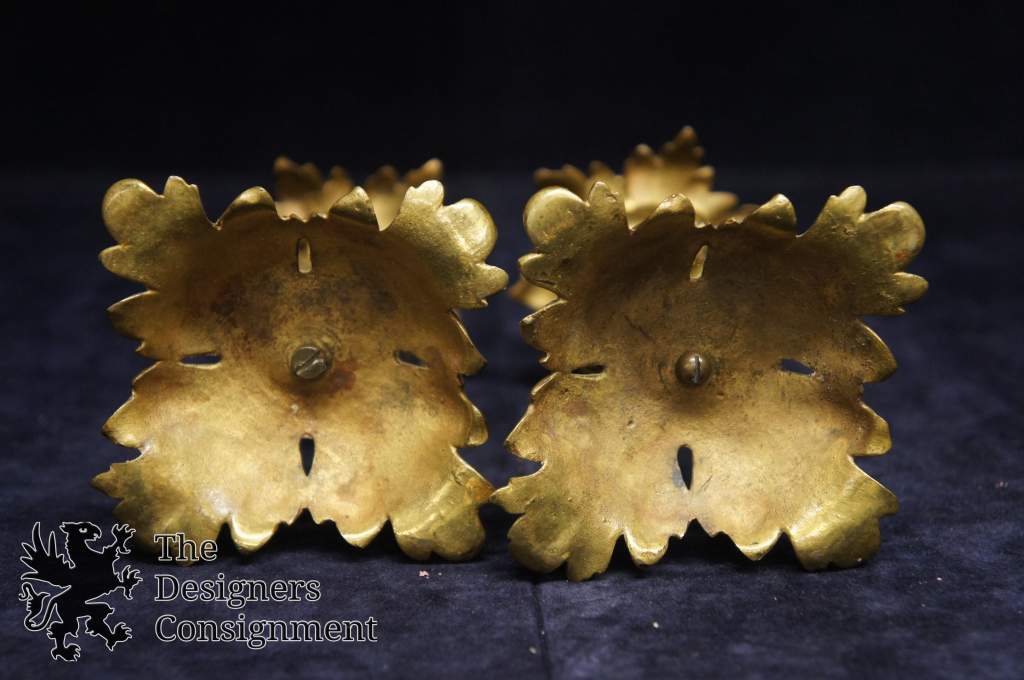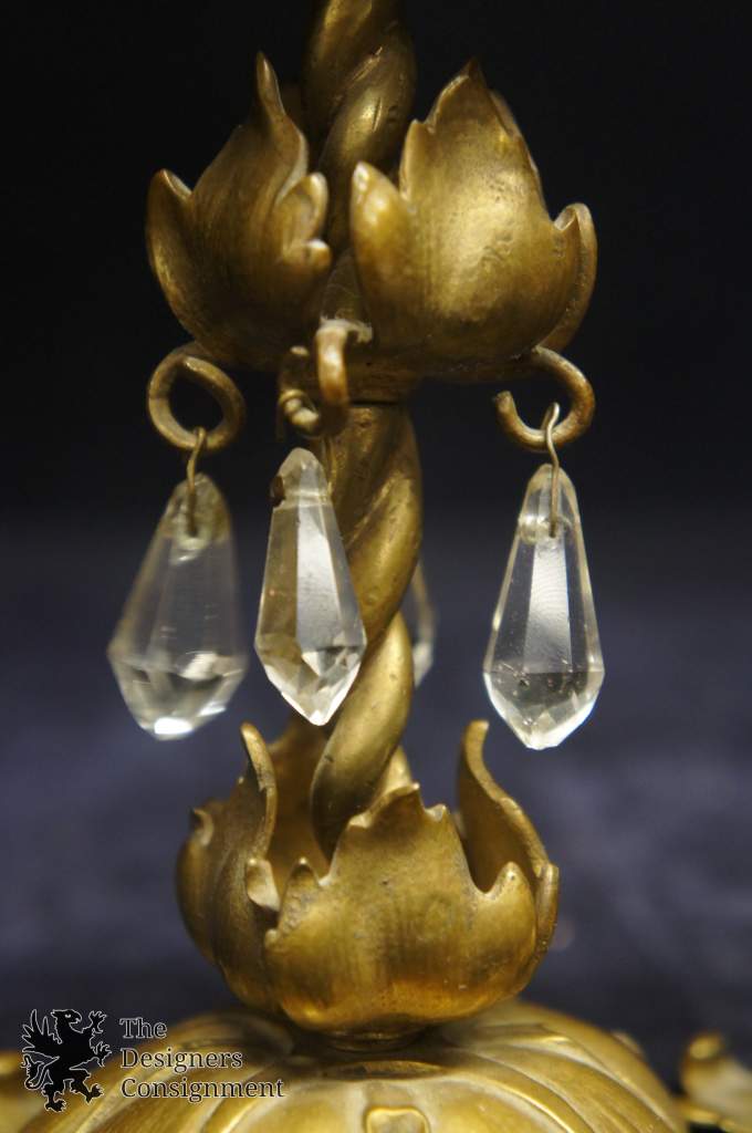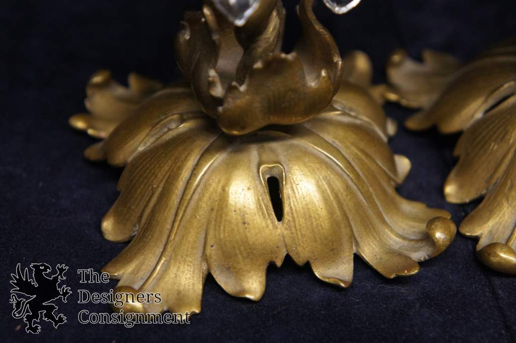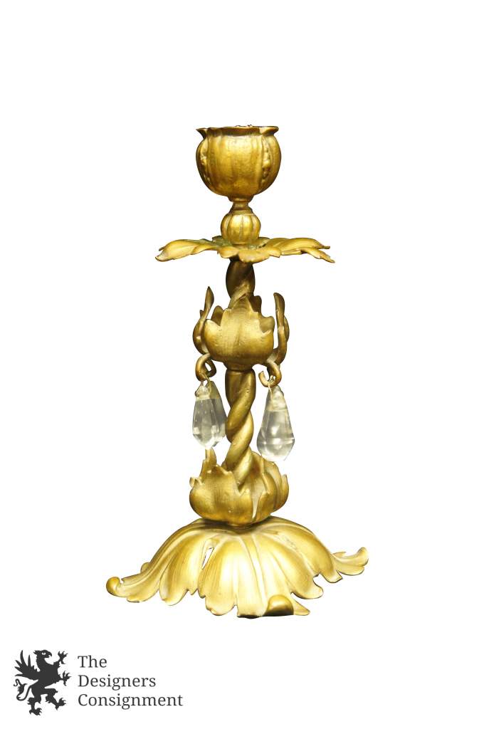 2 Small Vintage Brass Candlesticks Taper Pair Leaf Design Drop Crystal Accents