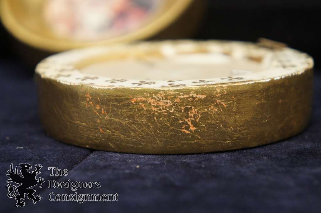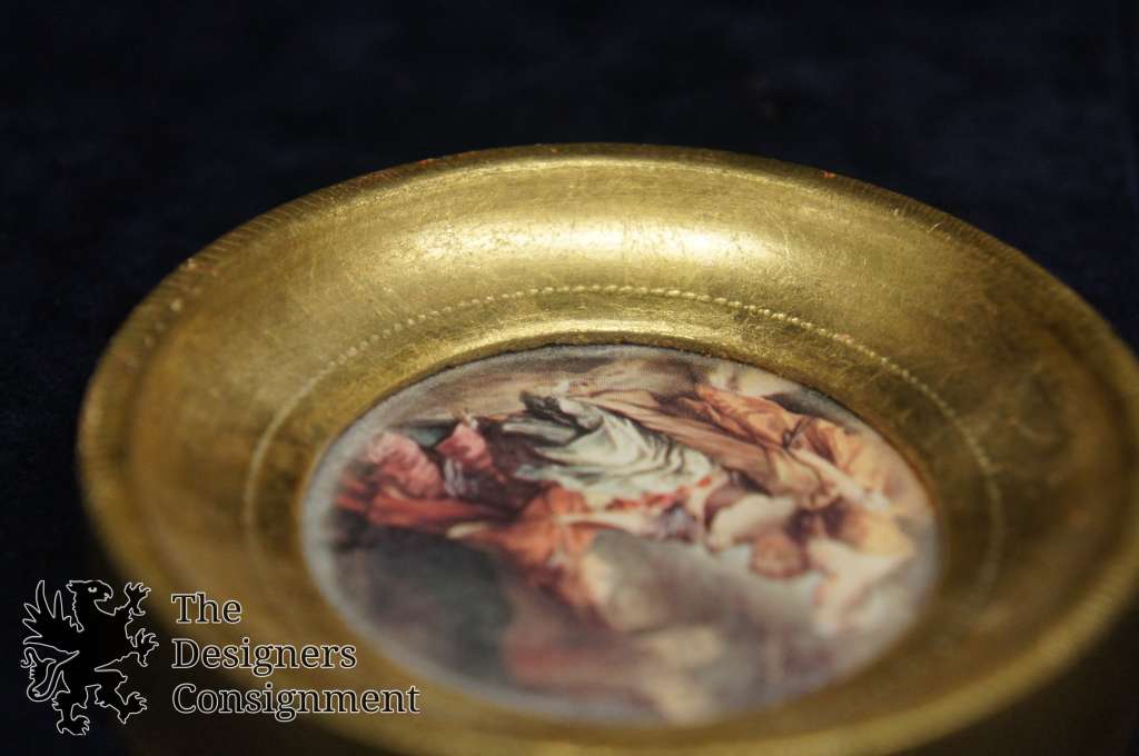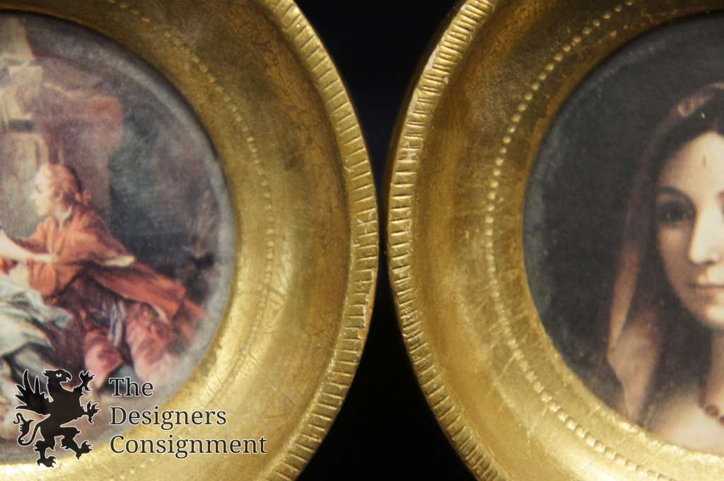2 Vintage Round Miniature Framed Prints Pair Woman in Veil Figures in Garden Art