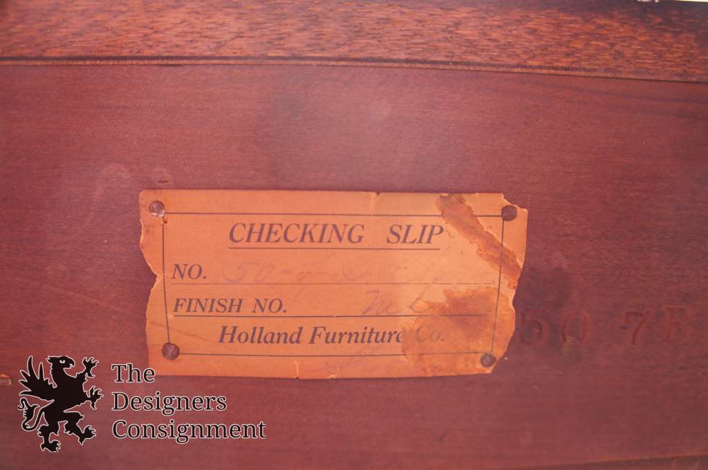 Holland Furniture Company opened its doors in 1893, specializing in Mahogany and Cherry furniture inspired by Dutch craftsman. The company closed its doors in 1967.