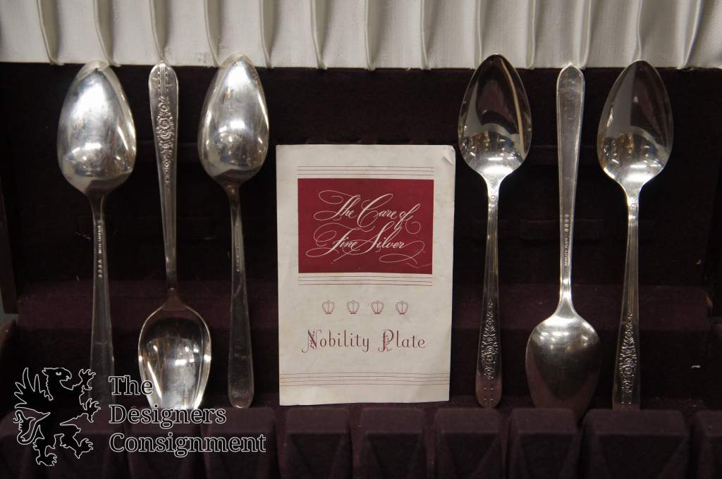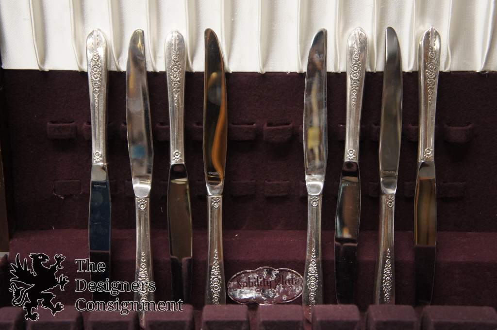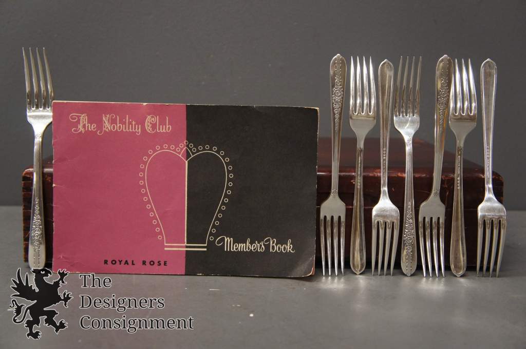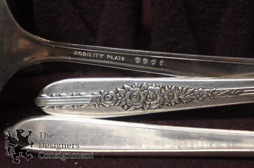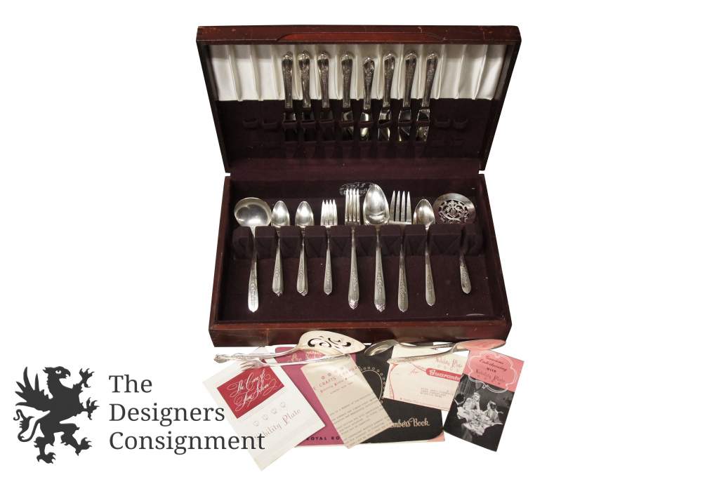 55 Pc '50s Mid Century Nobility Club Royal Rose Silverplate Flatware Set & Chest