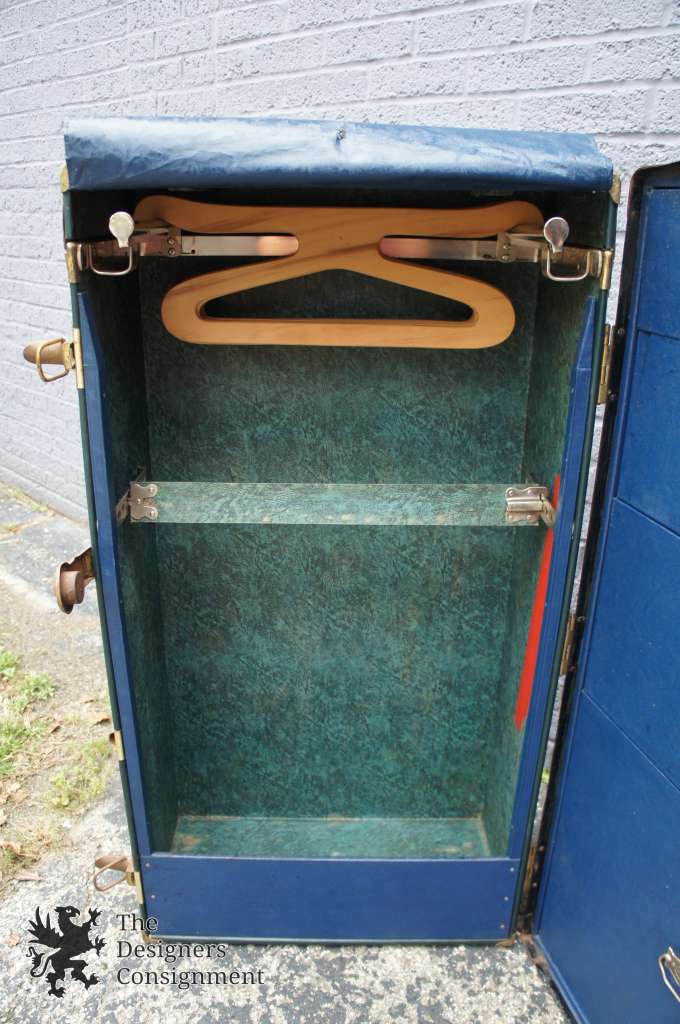 Taylor Fibre co Vulcanized Steamer Trunk. Green exteriorwith interior. Features drawer and hangers for storage.