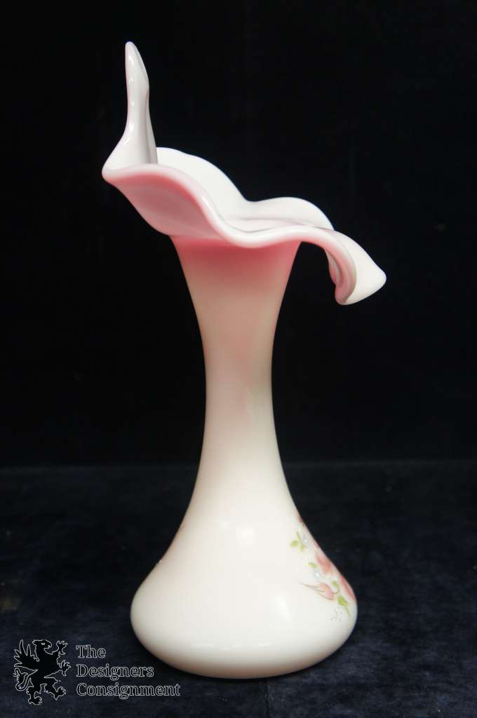 Hand painted and signed Jack in the Pulpit Fenton Glass Tulip Vase.