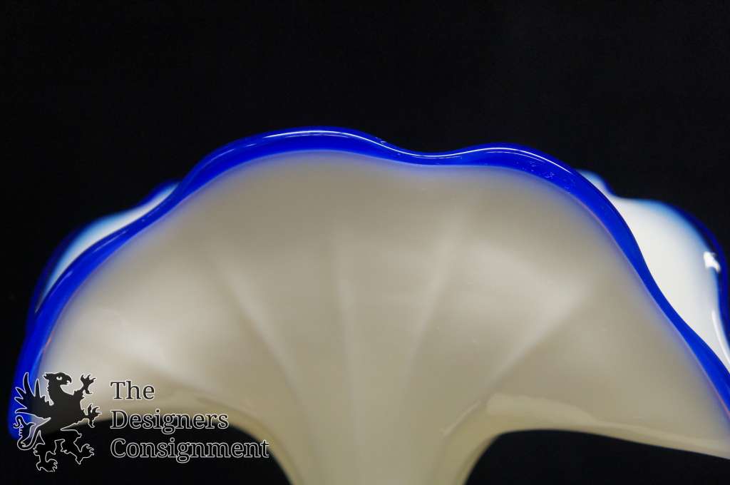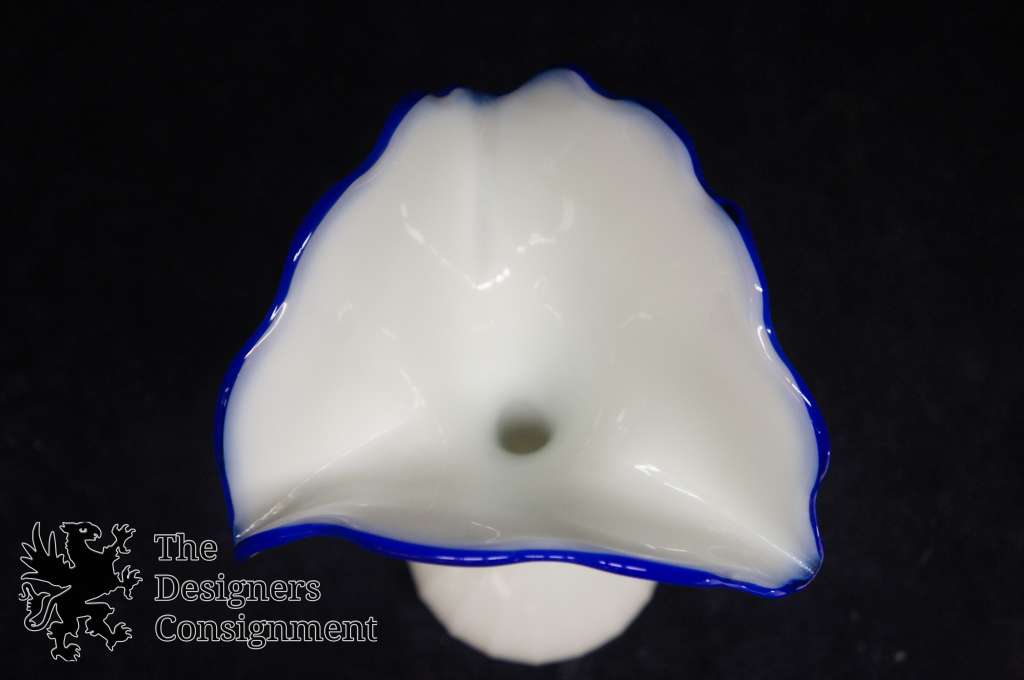 Unmarked mid century modern vase. Features a triangular mouth with cobalt trim.