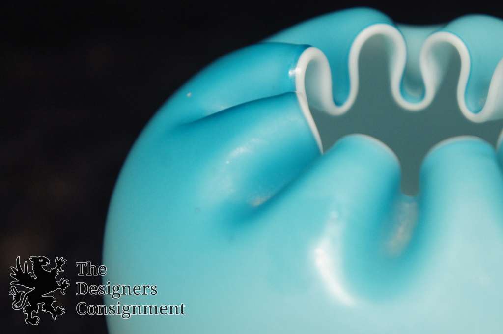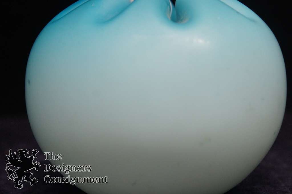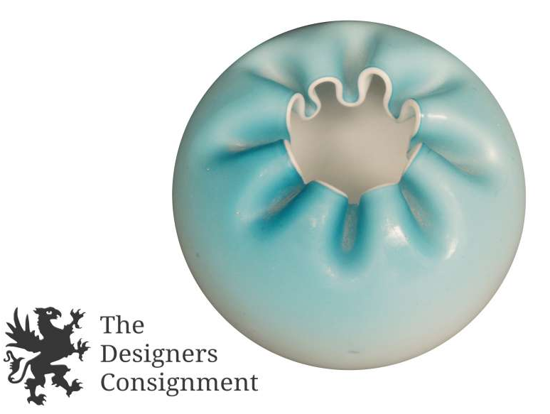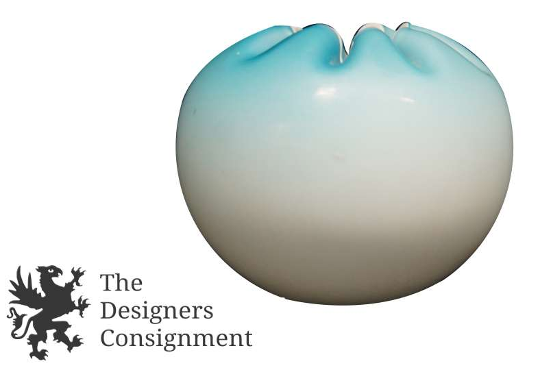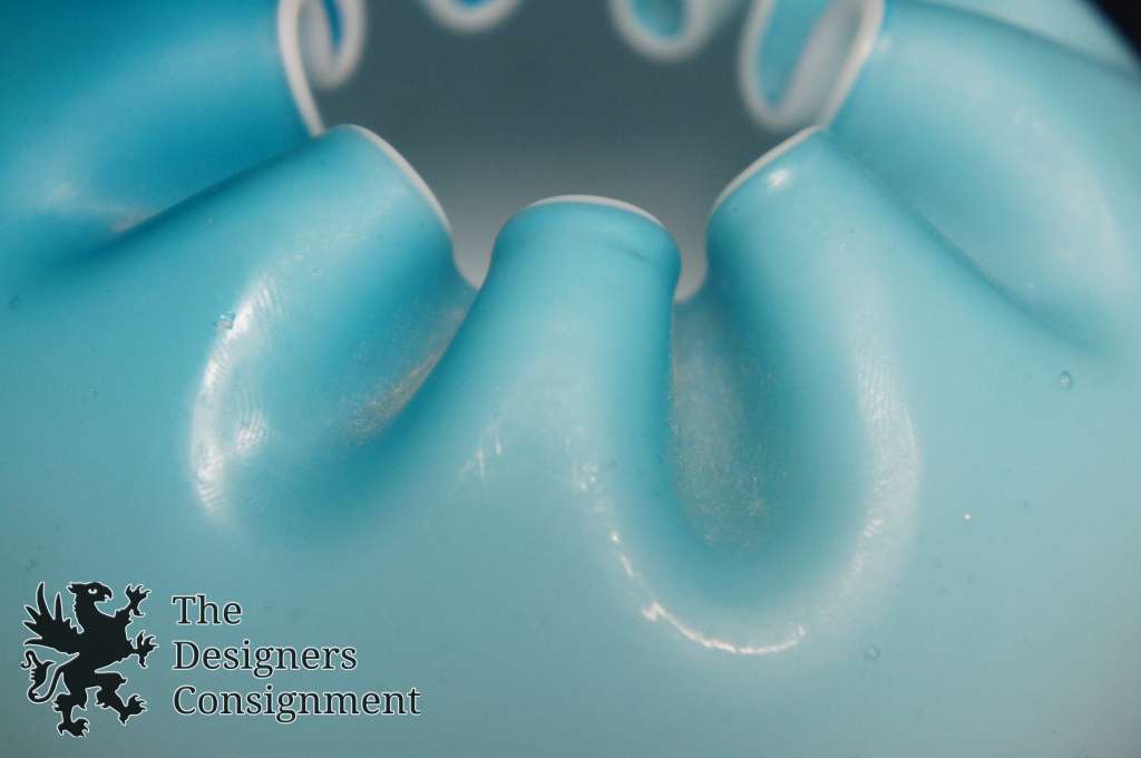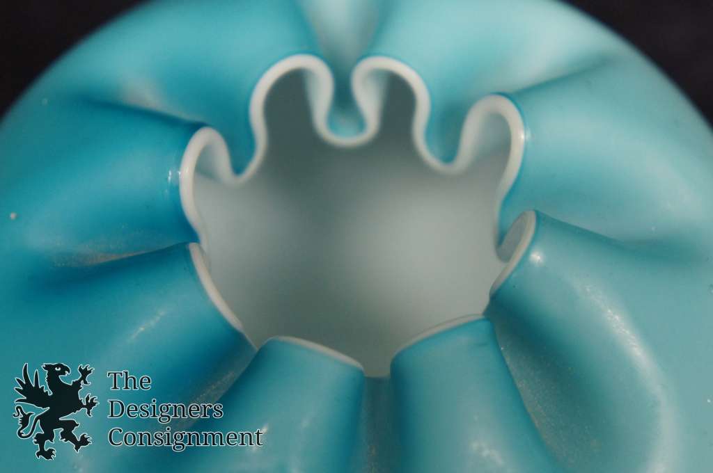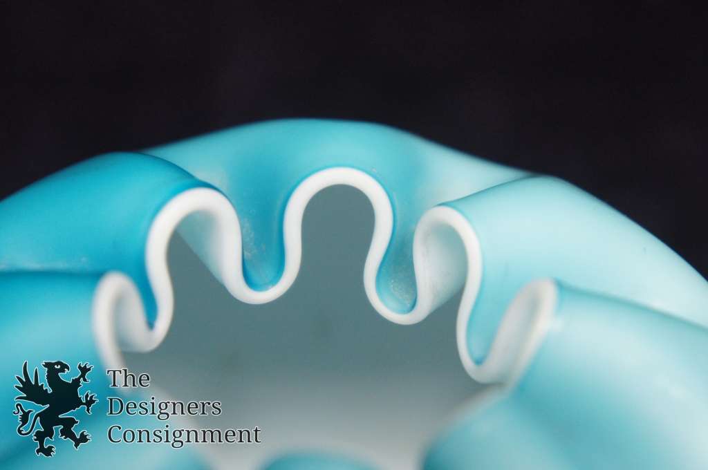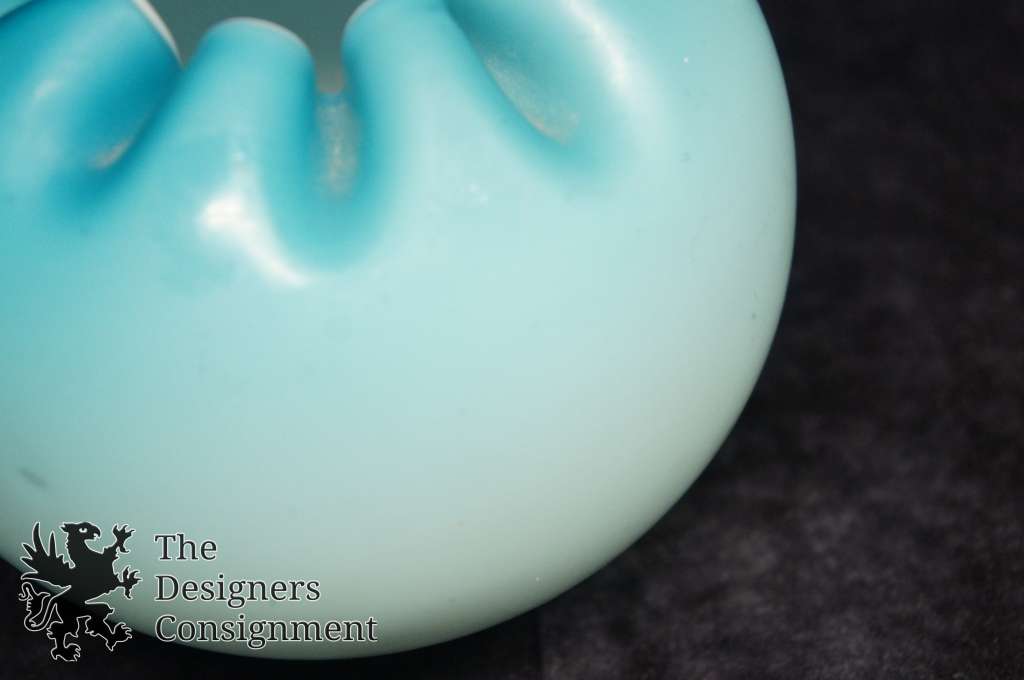 Antique Blue & White Victorian Pinched Satin Glass Bowl Dish Round Gradient Rose