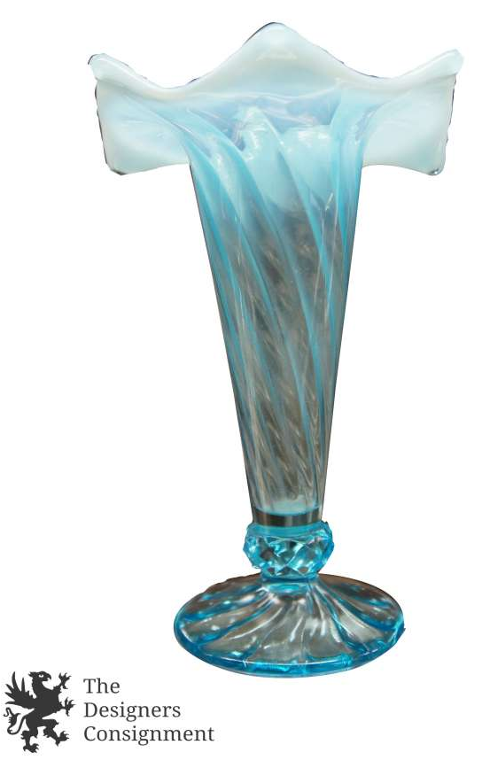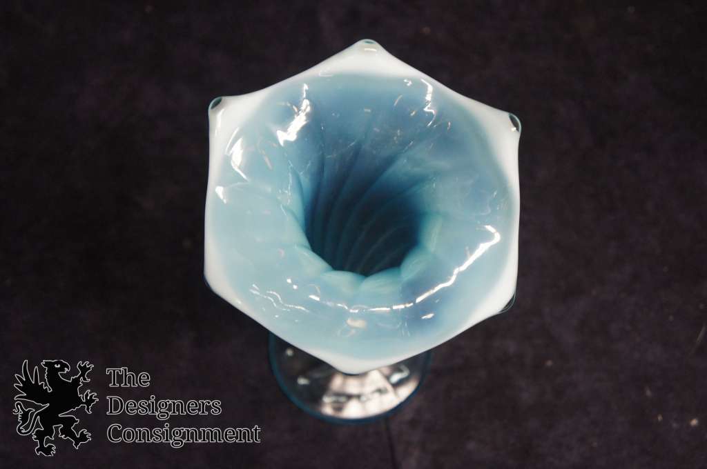 Vintage Blue Turquoise Fenton Art Glass Floral Bud Vase Trumpet Shaped Gradient