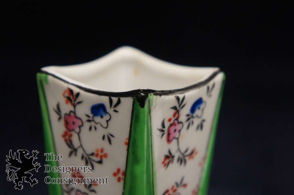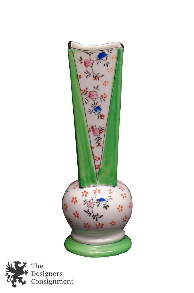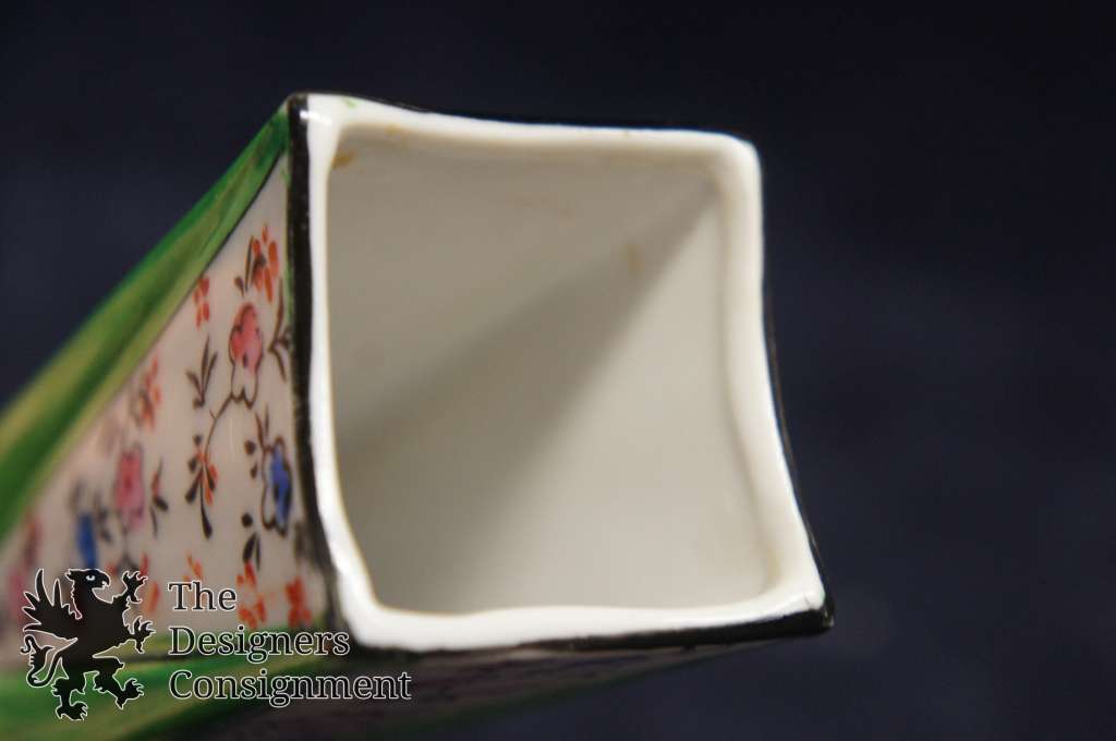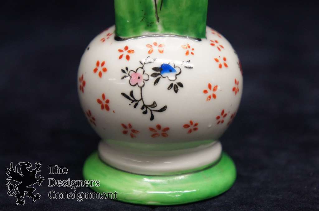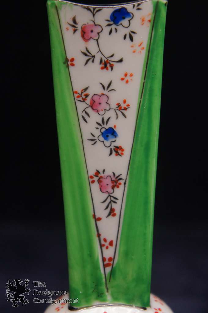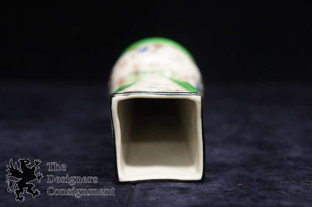 Vintage Chinese Bud Vase Porcelain Hand Painted Floral Green Pink Blue Flowers