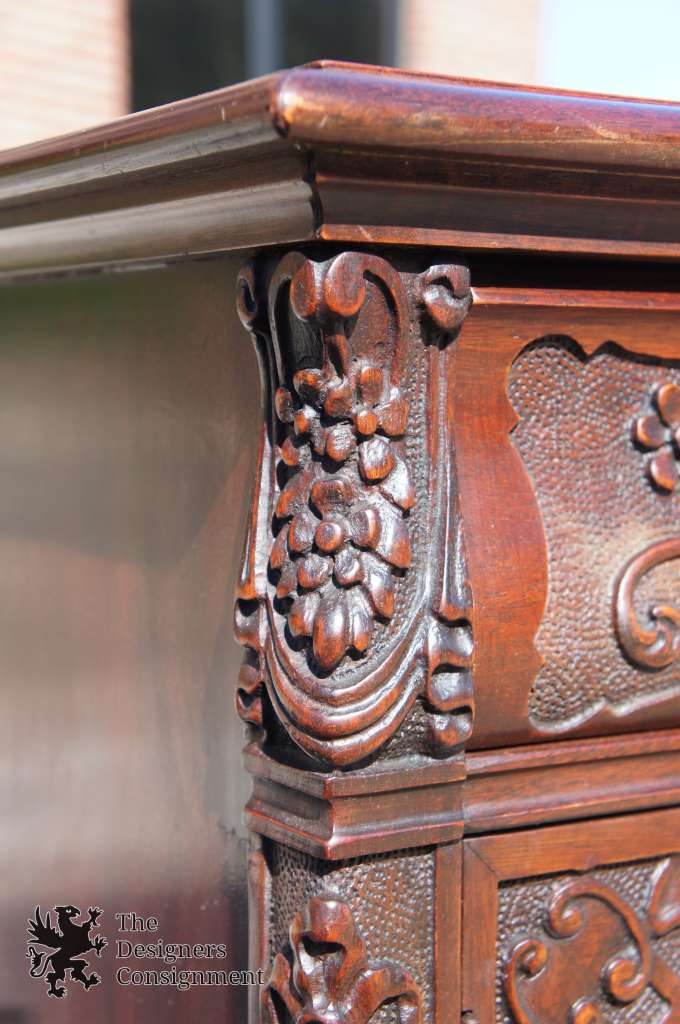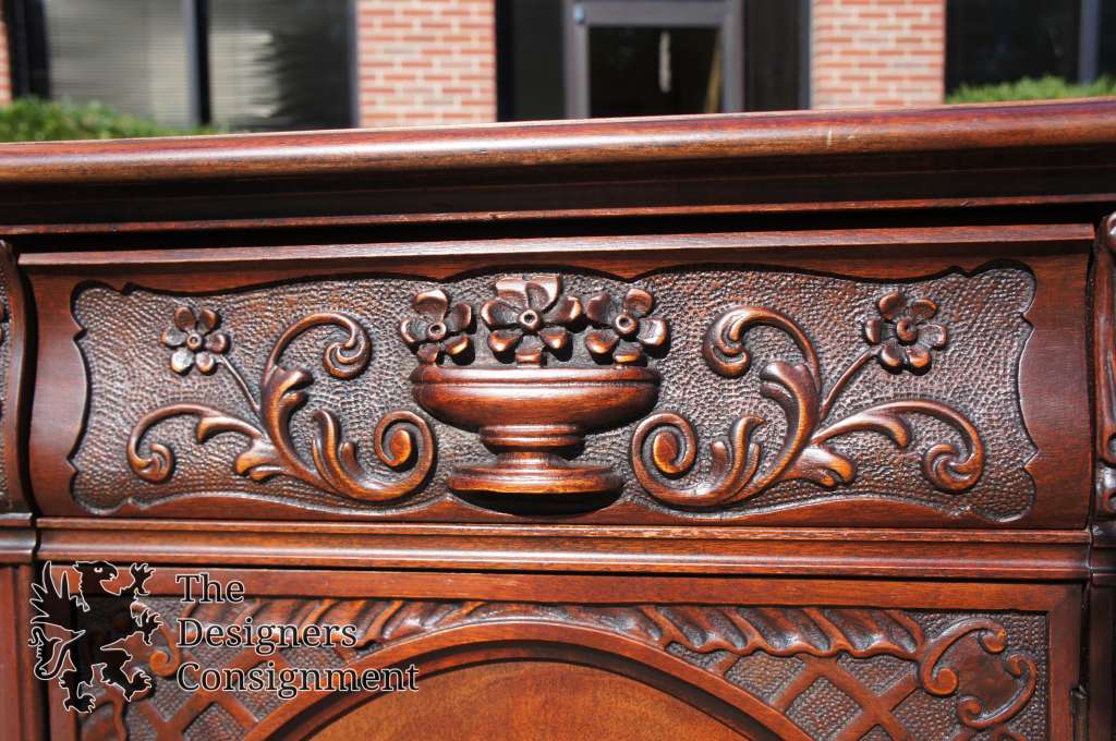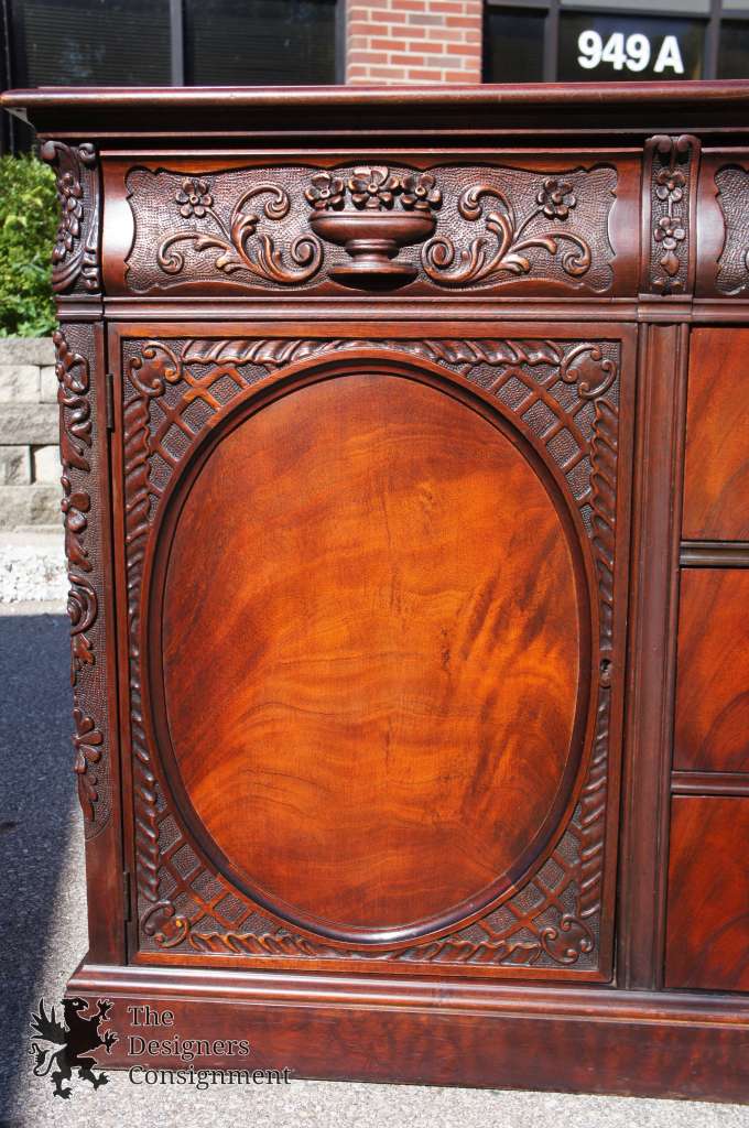 Vintage Mahogany Buffet Sideboard High Relief Floral Carved Made in Germany