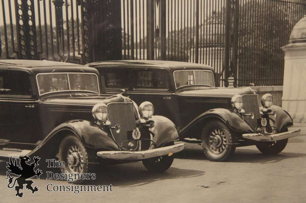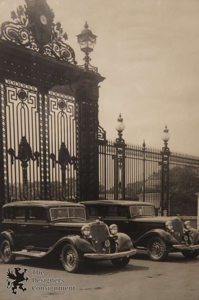 Vintage Black and White Photograph Picture Two Packard Sedans Palace Gates 24
