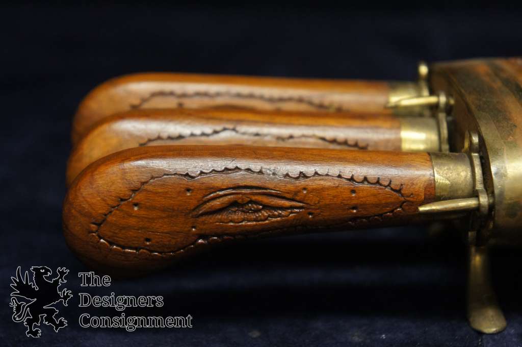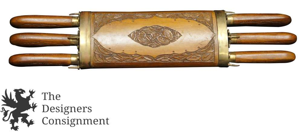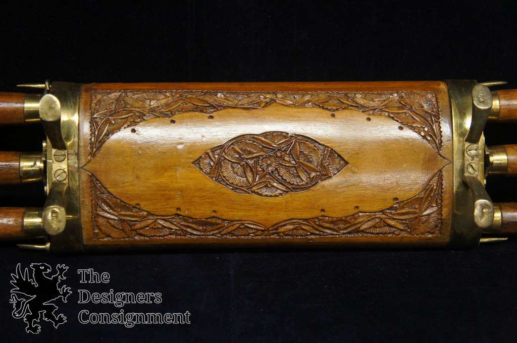 Set of 6 Vintage Steak Knives Floral Carved Wood Sheath India Brass Carving BBQ