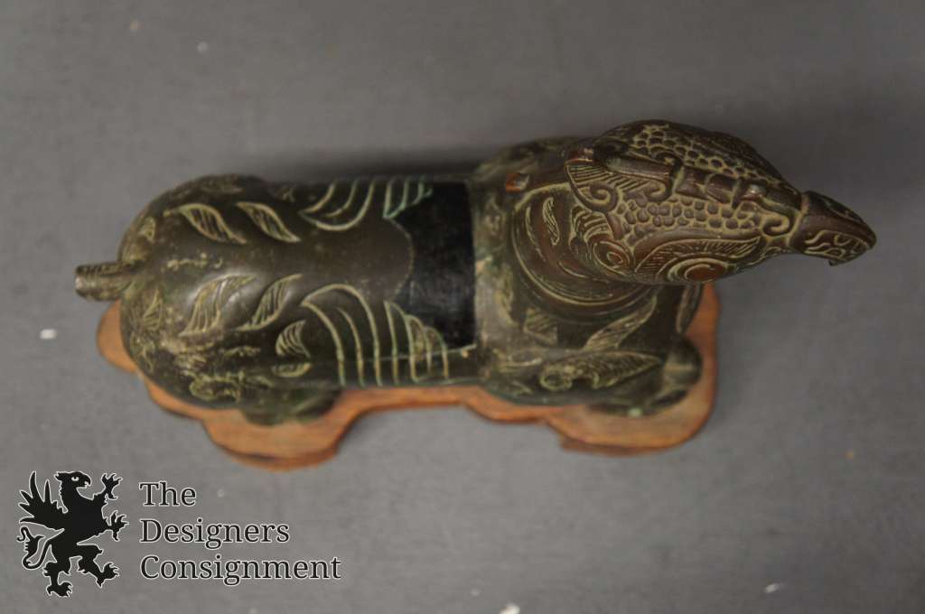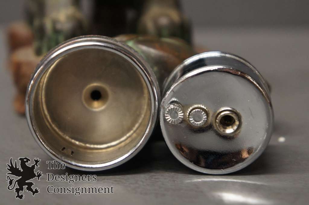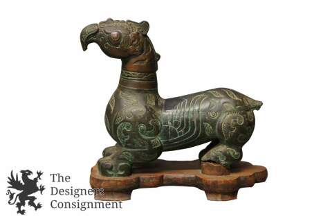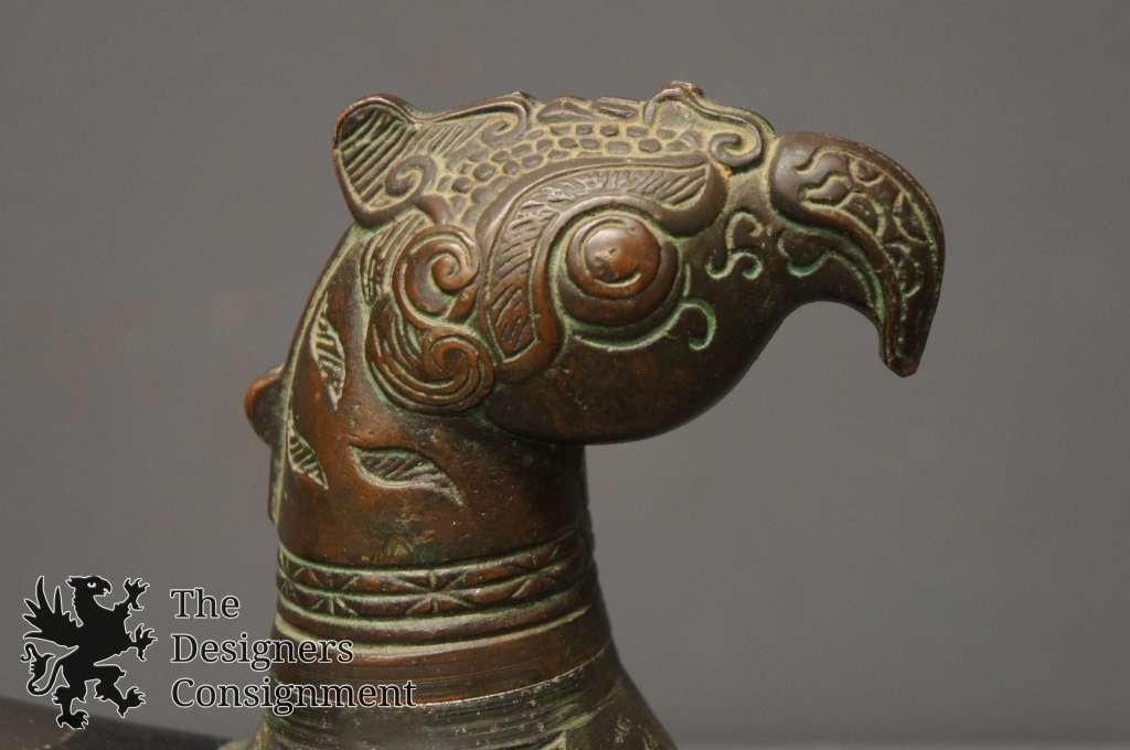 Intricately crafted table lighter. Features a Griffin with removable head and hinged backside for cigarette storage.