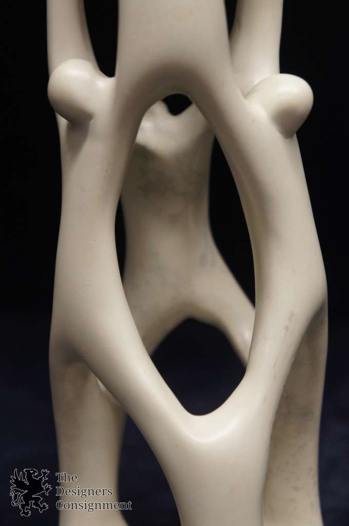A beautiful natural soapstone statue. Features an open geometric design with smooth finish. Known as tree of life figures.