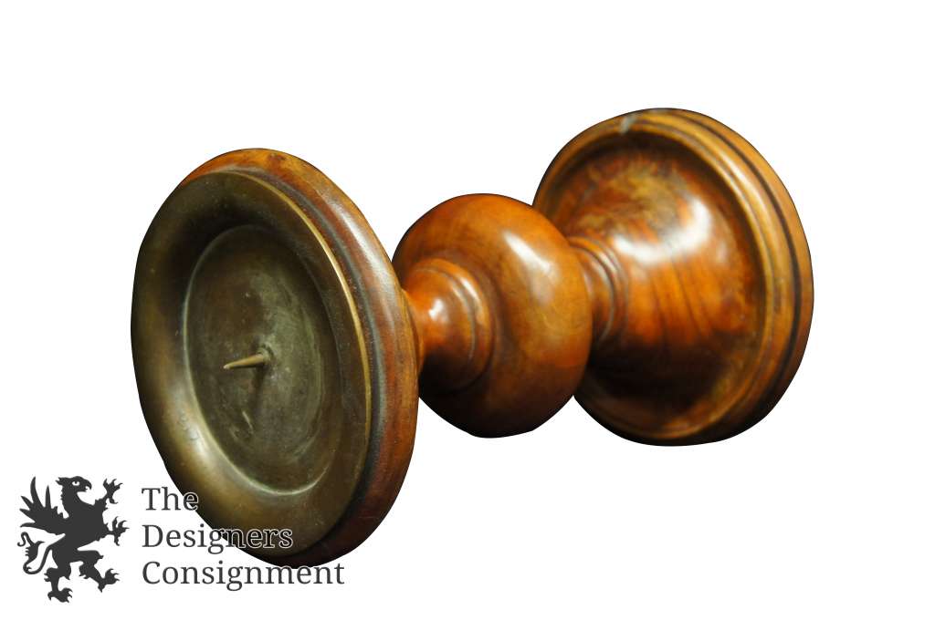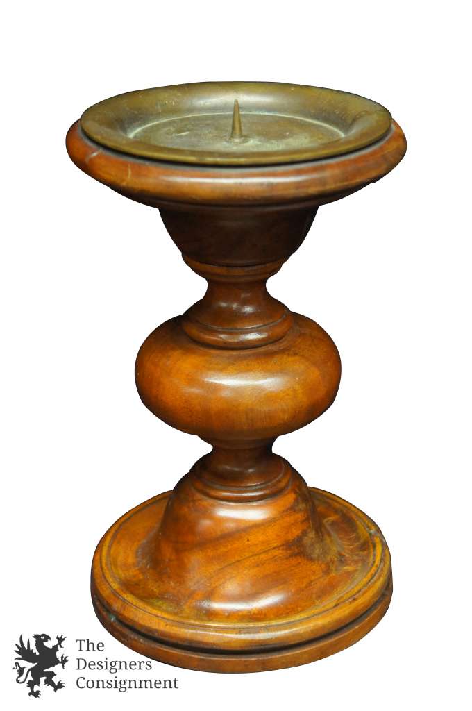 11" Vintage Mahogany Turned Candle Holder Stand Pillar Home Decor