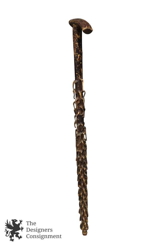 Vintage Dark Textured Branch Wooden Cane Walking Stick with Nubs Sprouts