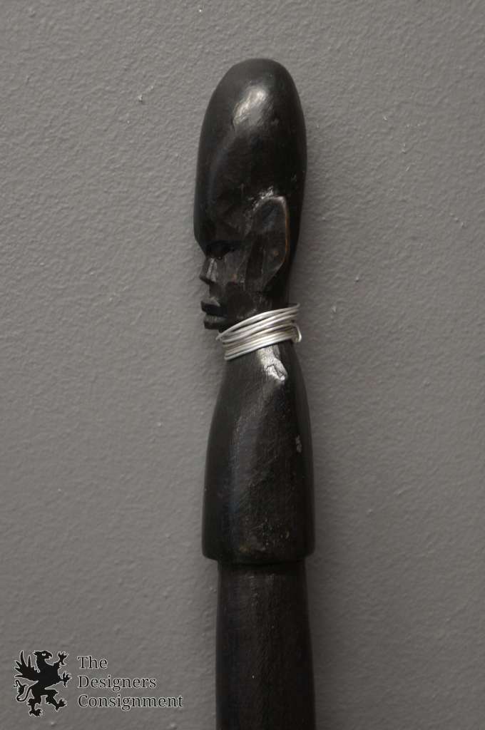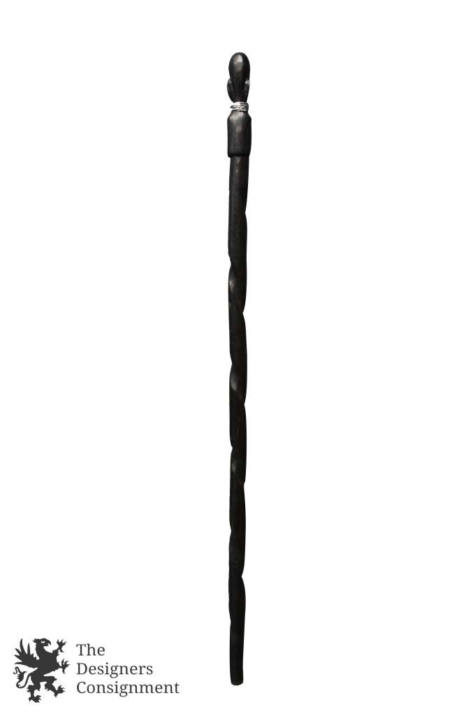 Vintage Ebony Carved African Figural Knob Spiral Wooden Cane Walking Stick