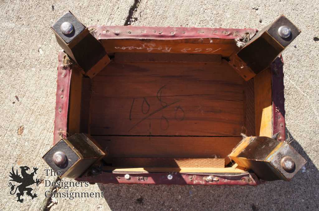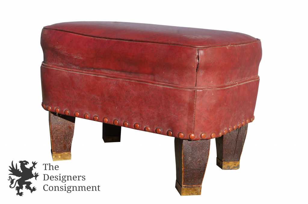 Mission Arts & Crafts Red Leather Stuffed Rectangular Foot Stool Ottoman Studded