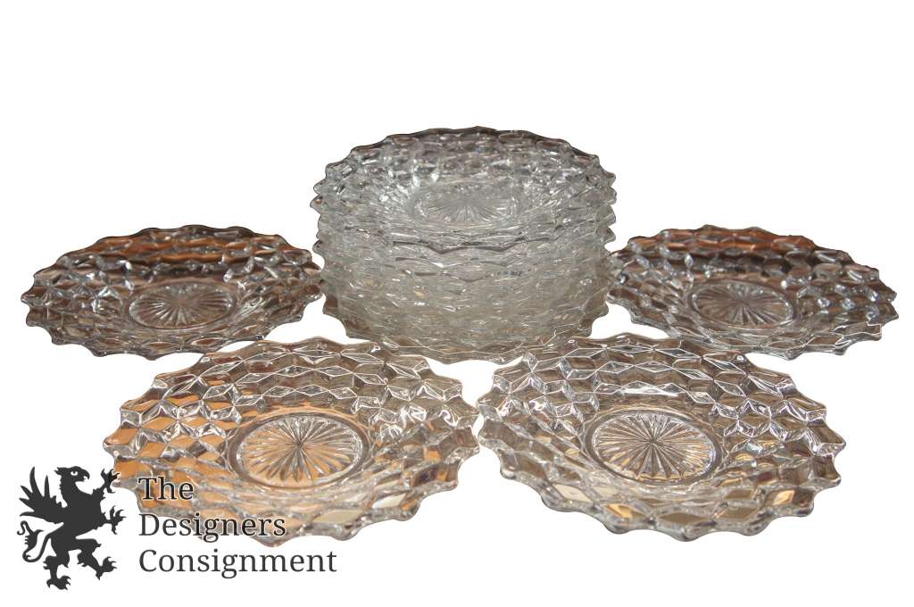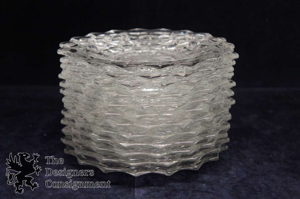 Set of 12 Vintage Fostoria Crystal Dessert Bread Butter Plates Starburst Edge