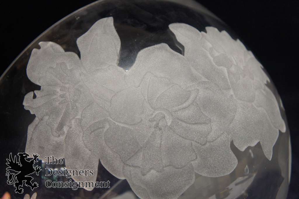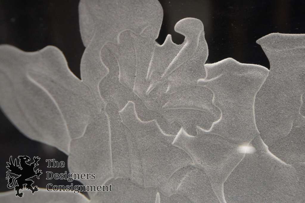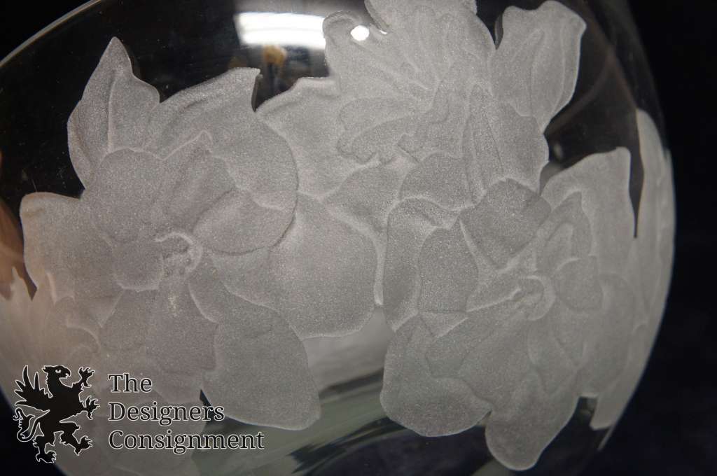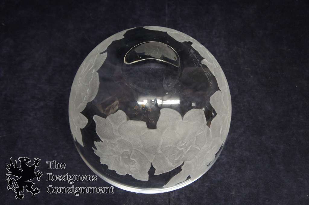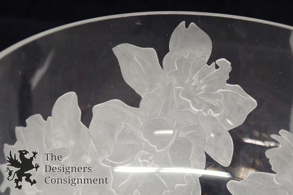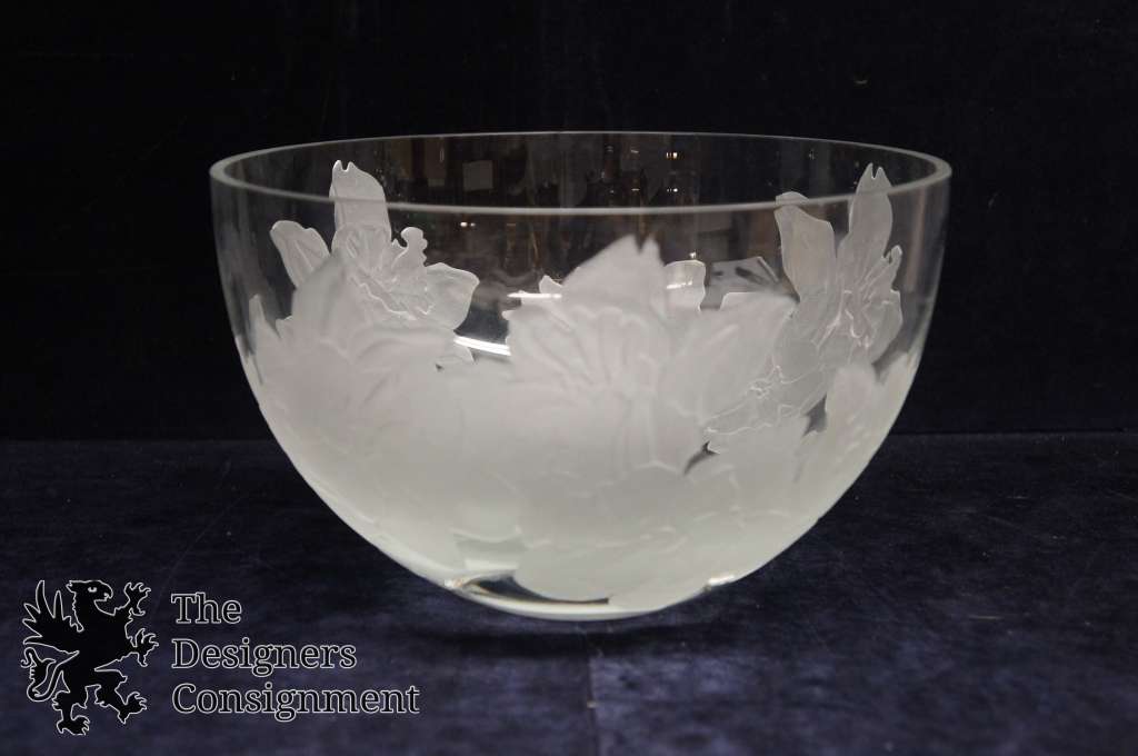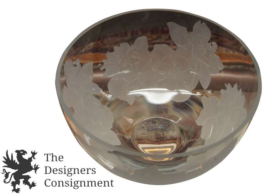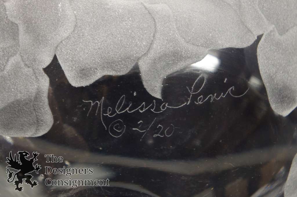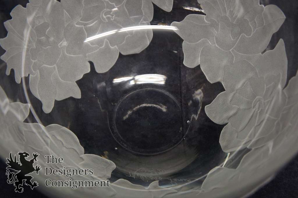 Beautifullydesigned frosted & etched glass floral bowl. SignedMelissa Penic 2/20. A great centerpiece for any setting.