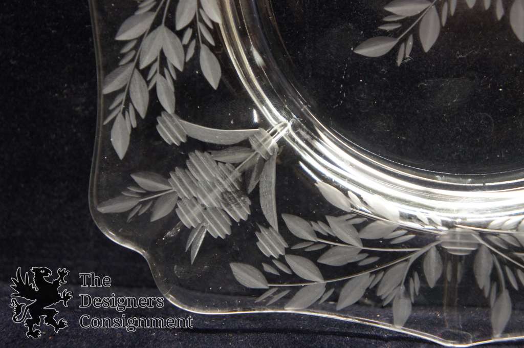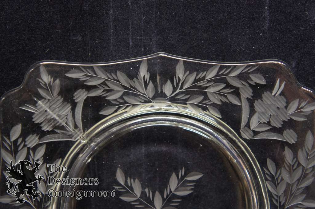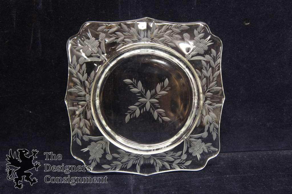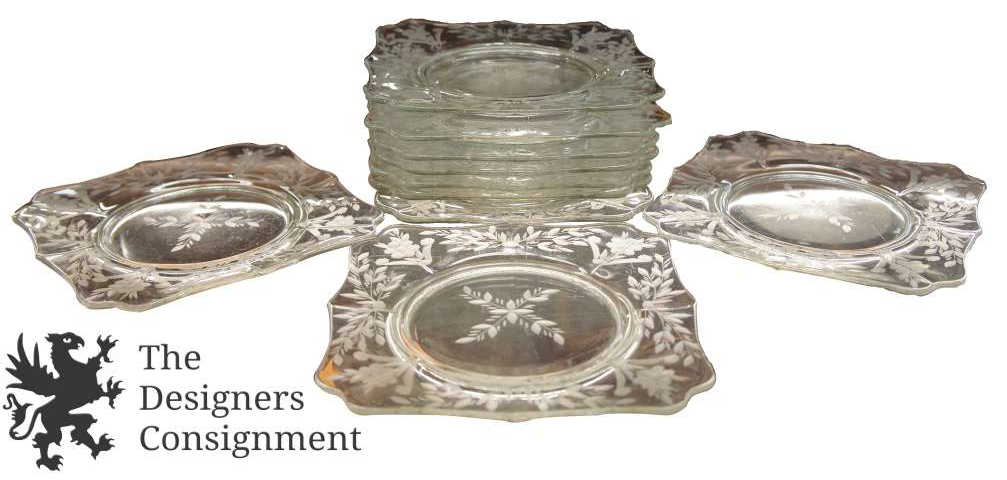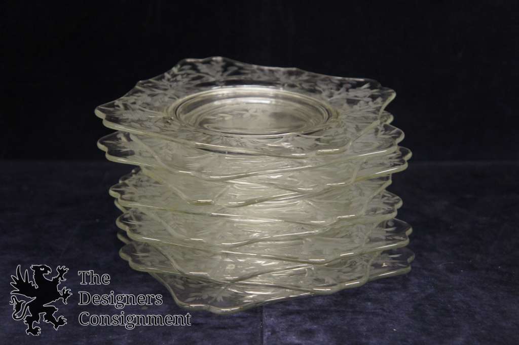Set of 10 Vintage Cambridge Tapered Square Glass Dessert Plates Frosted Floral