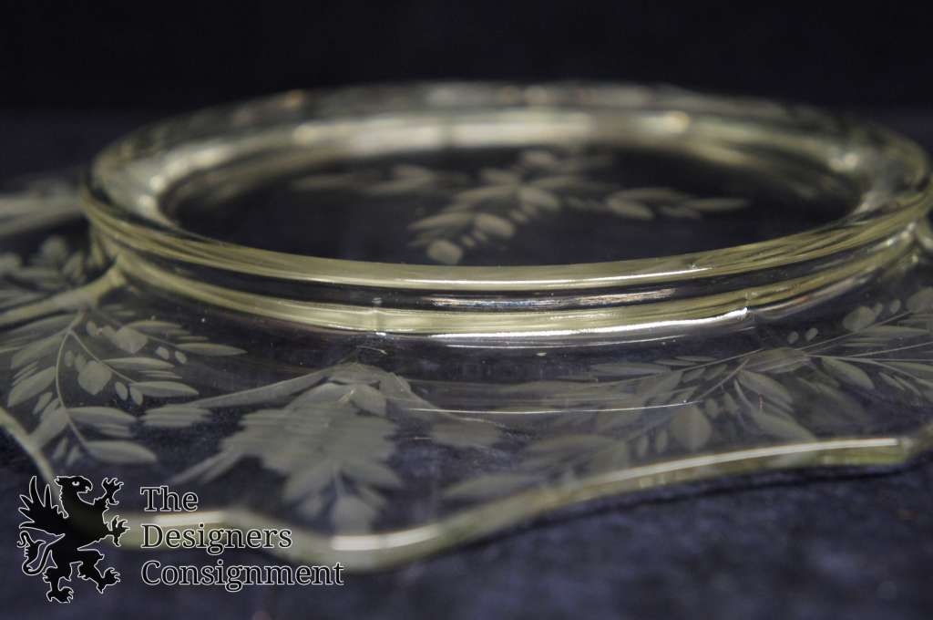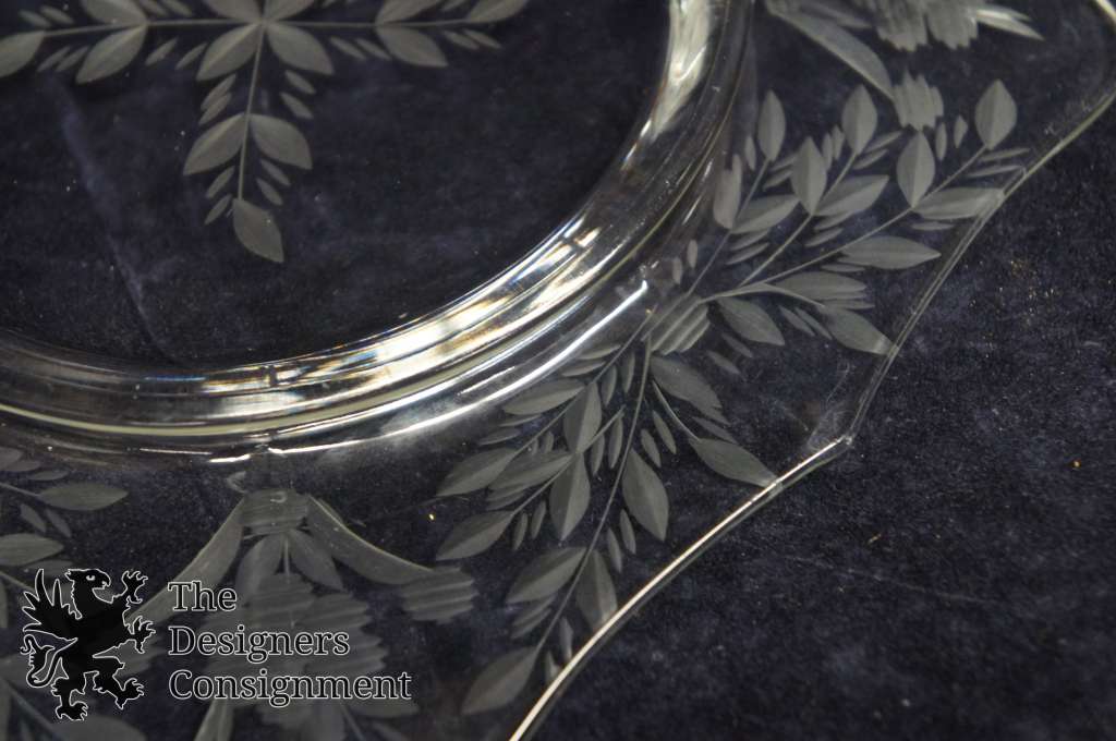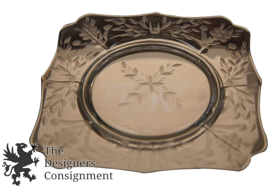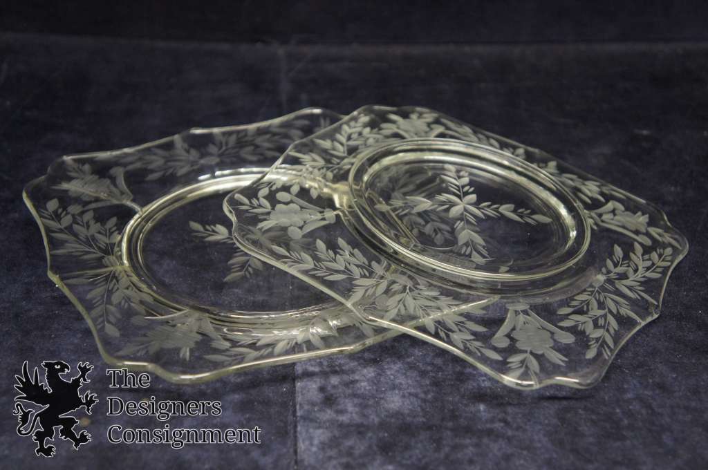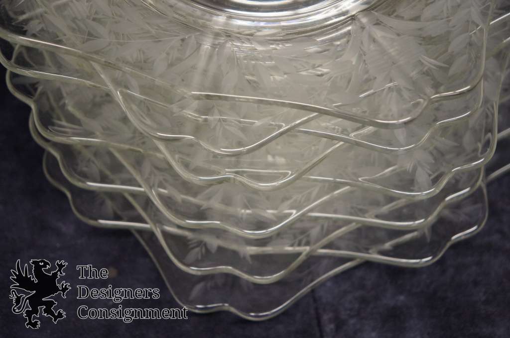 Set of 10 Vintage Cambridge Tapered Square Glass Dessert Plates Frosted Floral