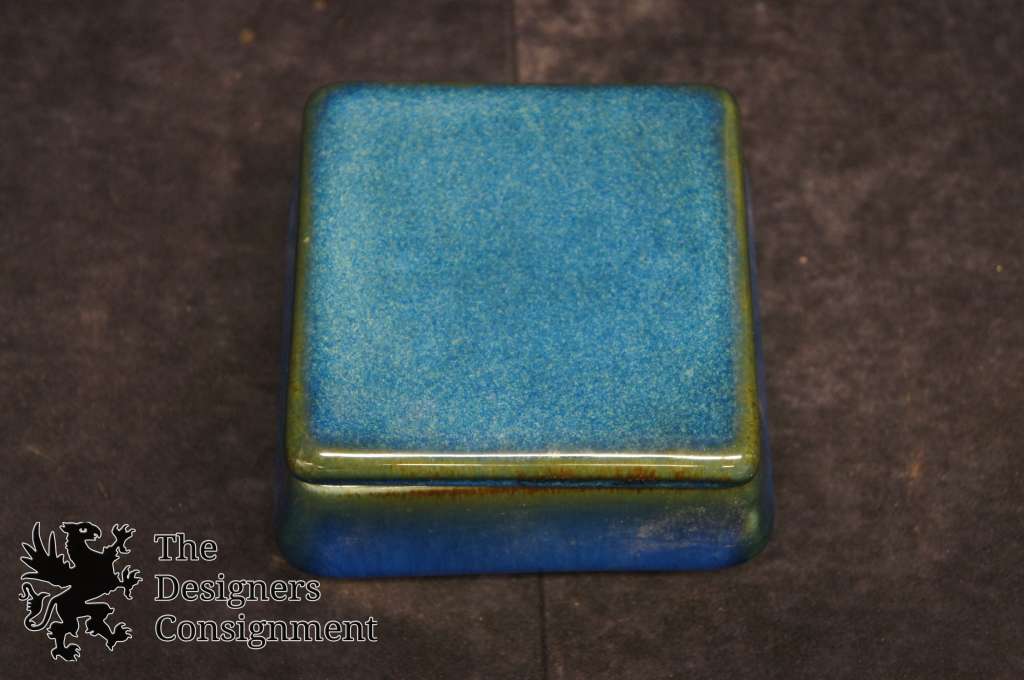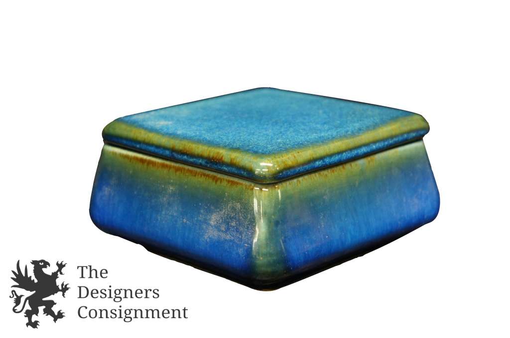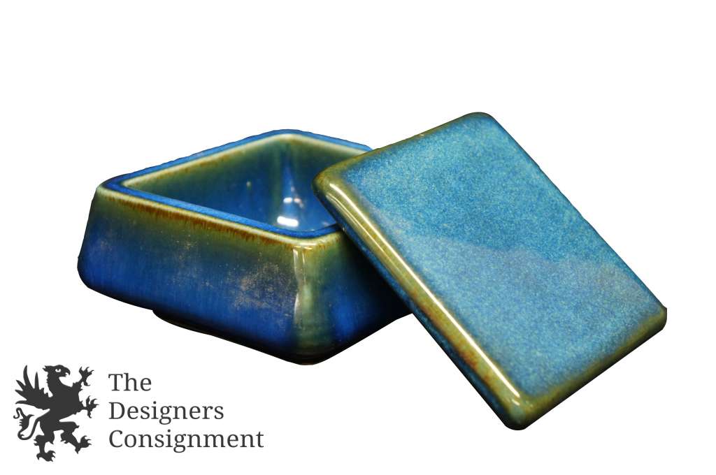 Gustavsberg Lagun Sven Sweden Lidded Ceramic Porcelain Dish Green Blue Burst