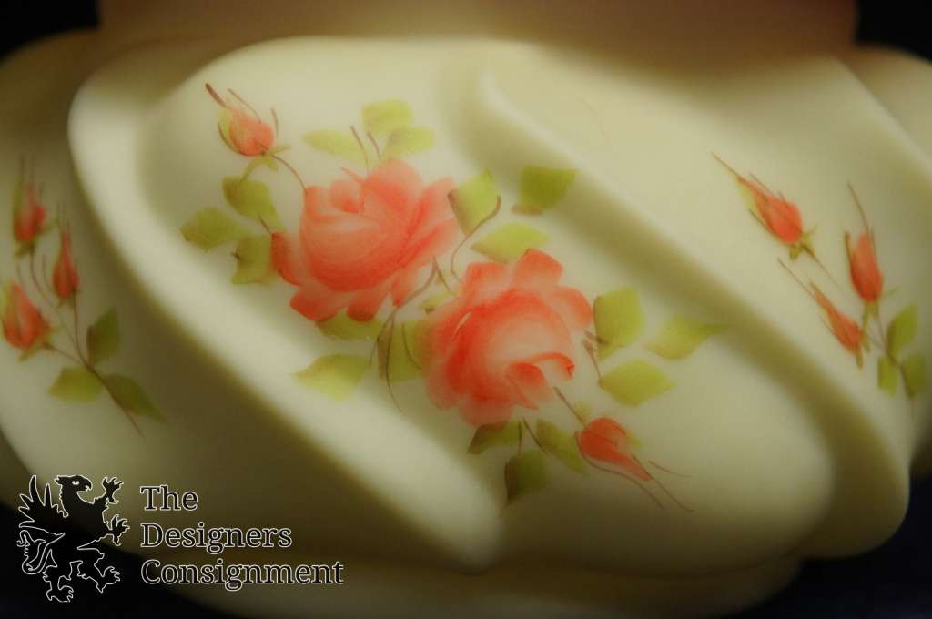 Fenton Floral Hand Painted UV Glass Wavecrest Basket Rose Burmese Linda Everson