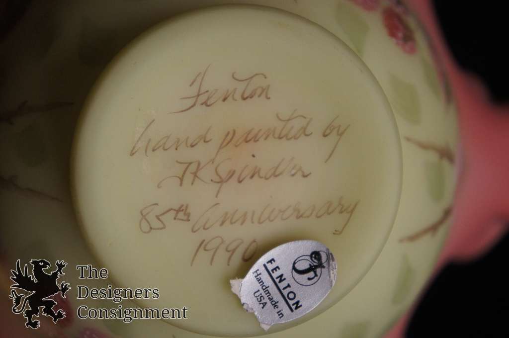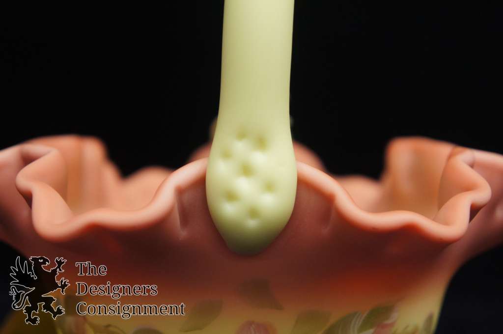 Vintage Fenton Burmese Raspberry 85th Anniversary Basket Uranium Glass Painted