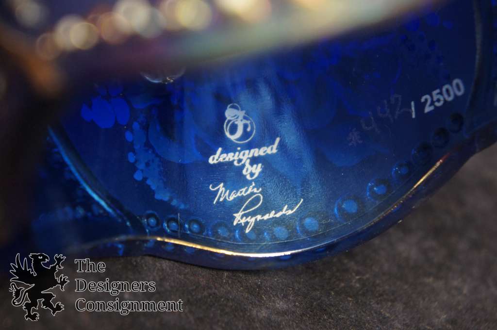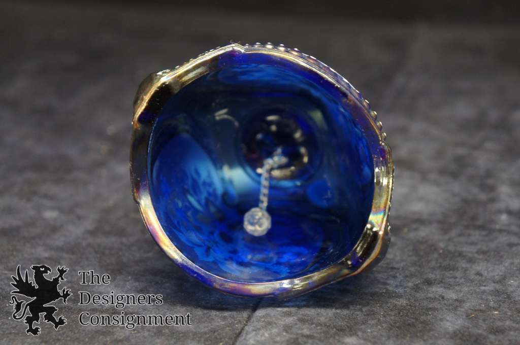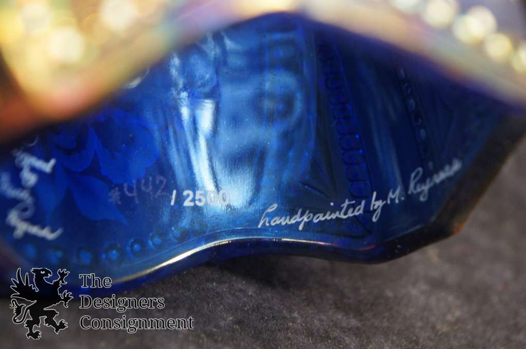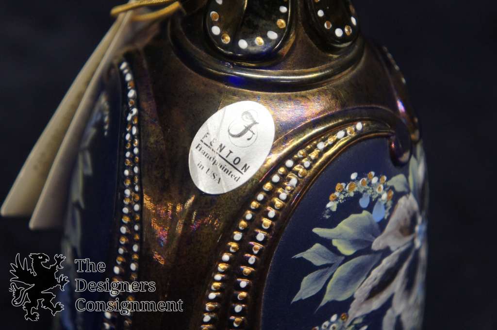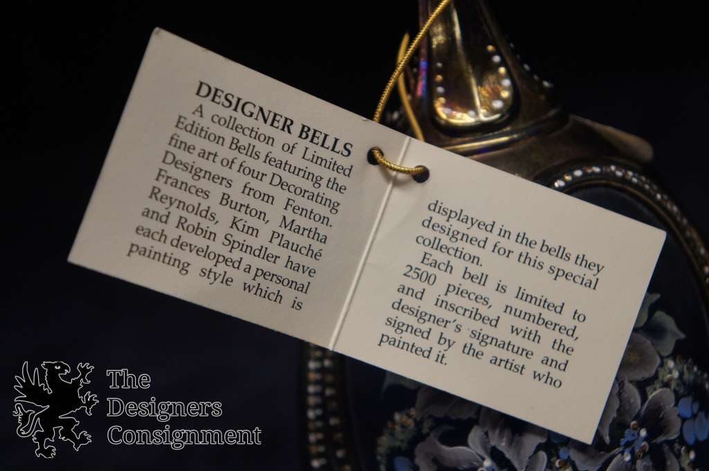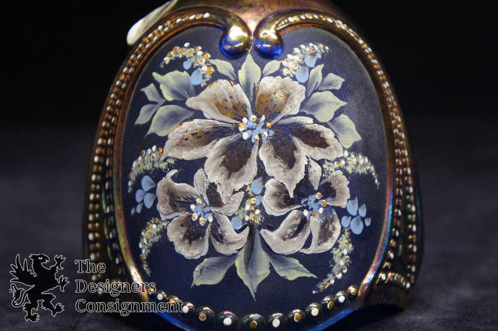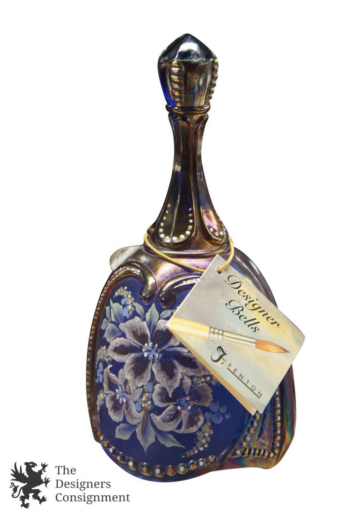 Vintage Fenton Designer Bell Glass Blue Hand Painted Floral Mark Reynolds 7