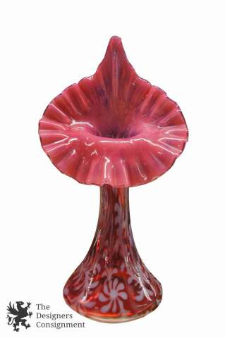 A gorgeous Fenton Cranberry Jack in the Pulpit Vase with Daisy & Fern pattern.
