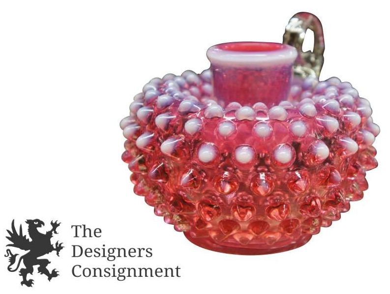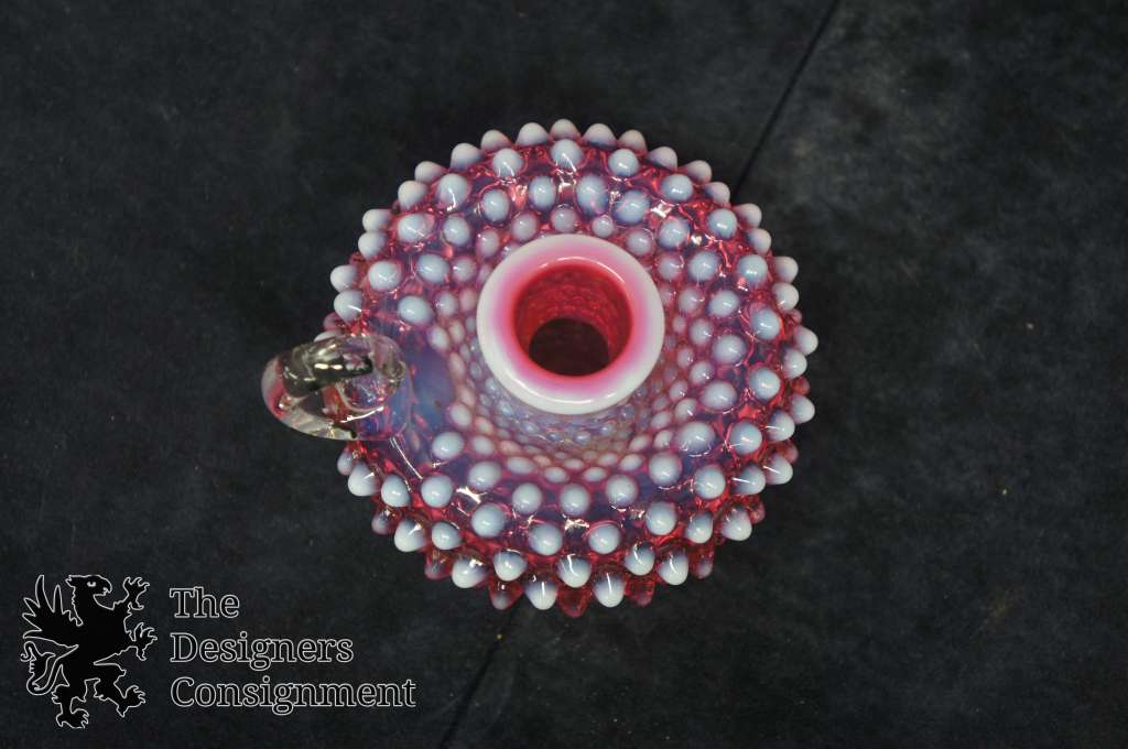 Vintage Fenton Cranberry Opalescent Art Glass Hobnail Candlestick Chamber Holder