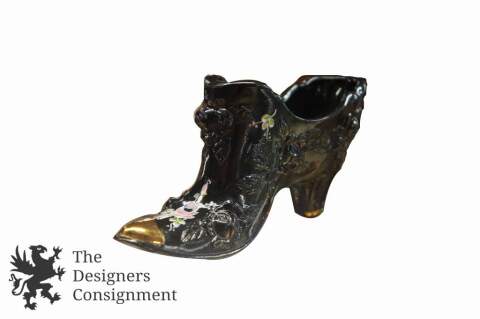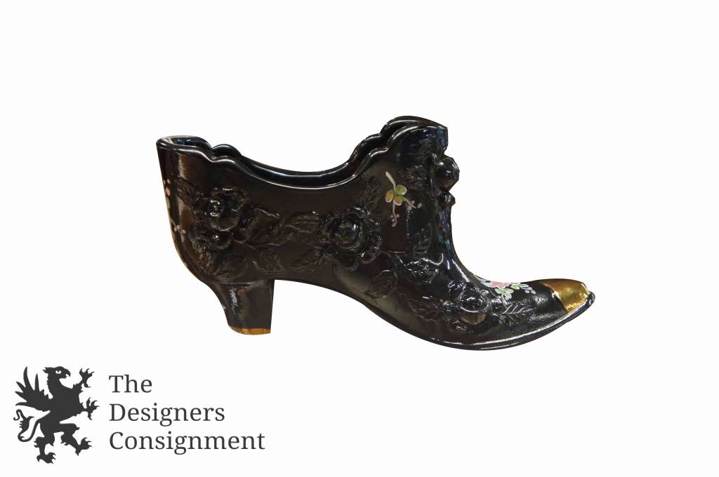 Vintage Fenton Hand Painted Copper Rose Victorian Boot Shoe Vase Roses Signed