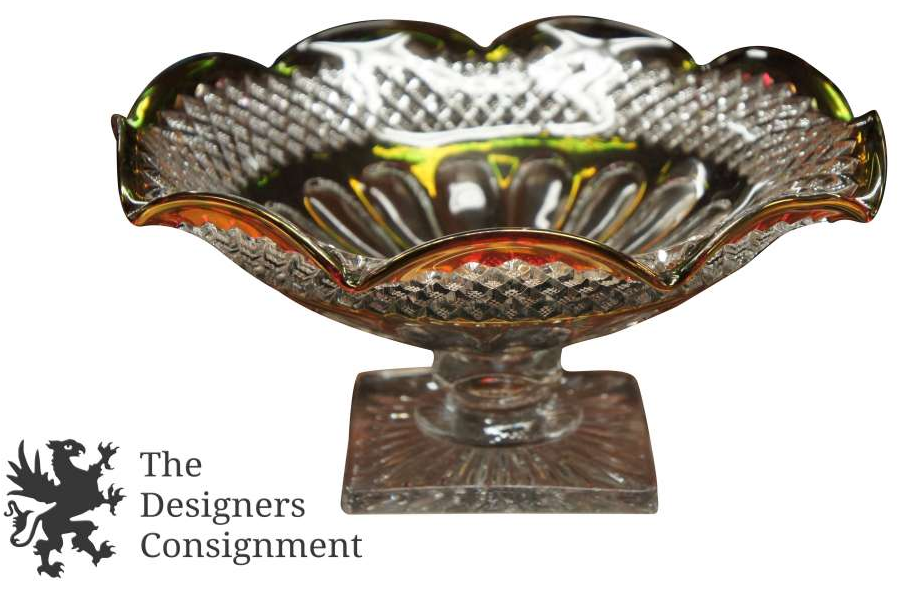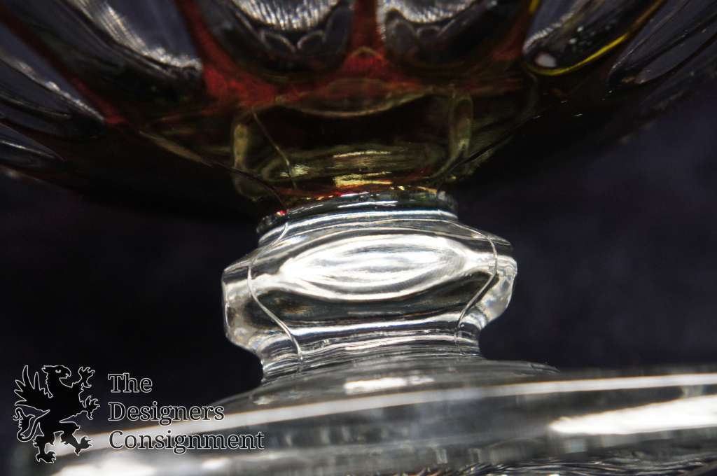 Vintage Westmoreland Cut to Clear Lattice Ruby Glass Footed Compote Fruit Dish