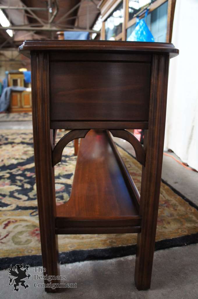 The perfect console table for any space. A classic take onChippendalestyling by Harden. This beautiful sofa table is made from cherry with a serpentine front and lower tier or shelf.