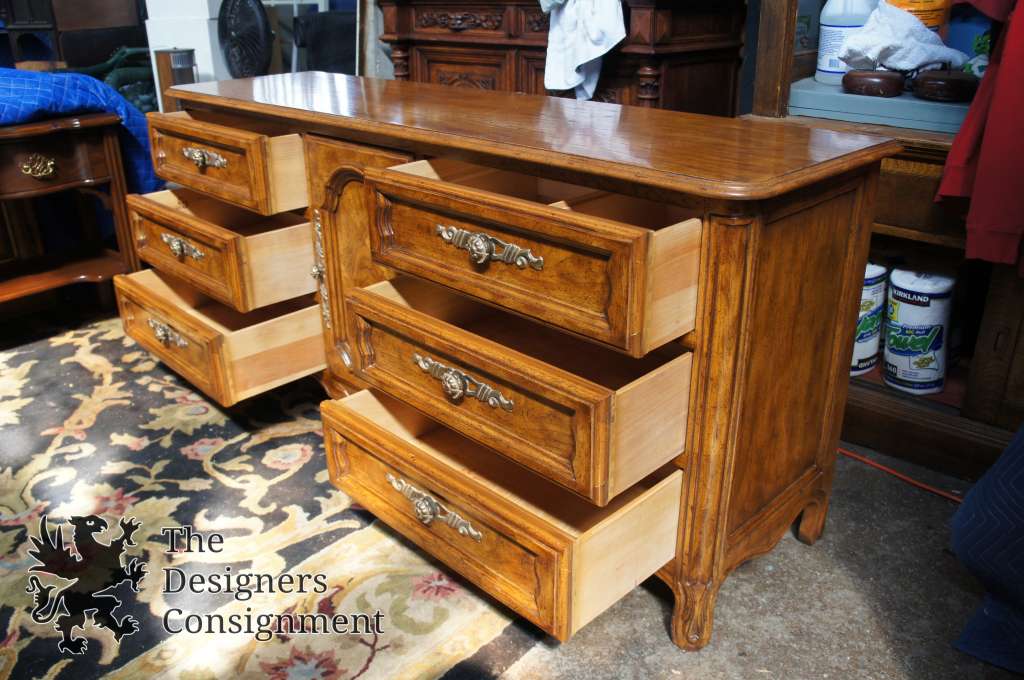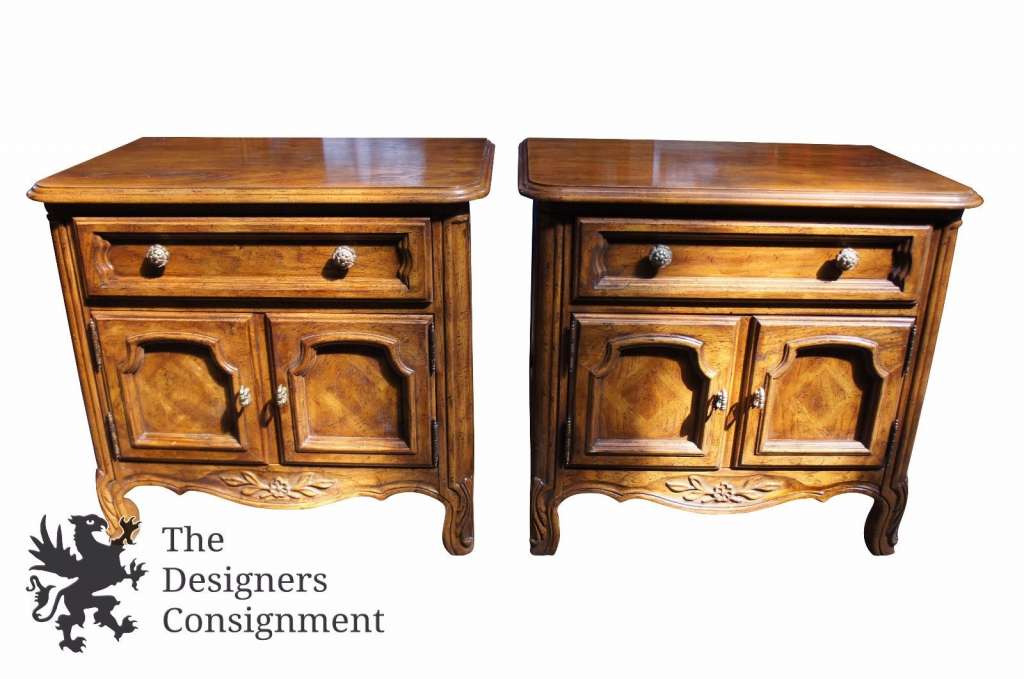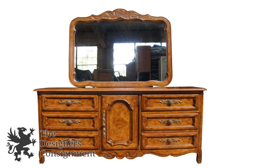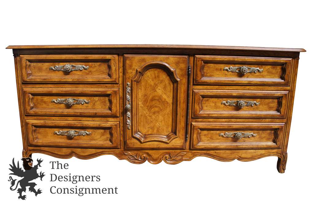 Cabernet Classics by Drexel Heritage. Features floral carved accents in a distressed oak finish. We have the full bedroom suite, listed individually.