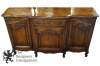 A gorgeous French Country breakfront. Made from Oak with a magnificent parquetry style top. Features carved and scalloped accents and scrolled feat. Each of the three lower doors are lockable, and the central drawer is dovetailed.
