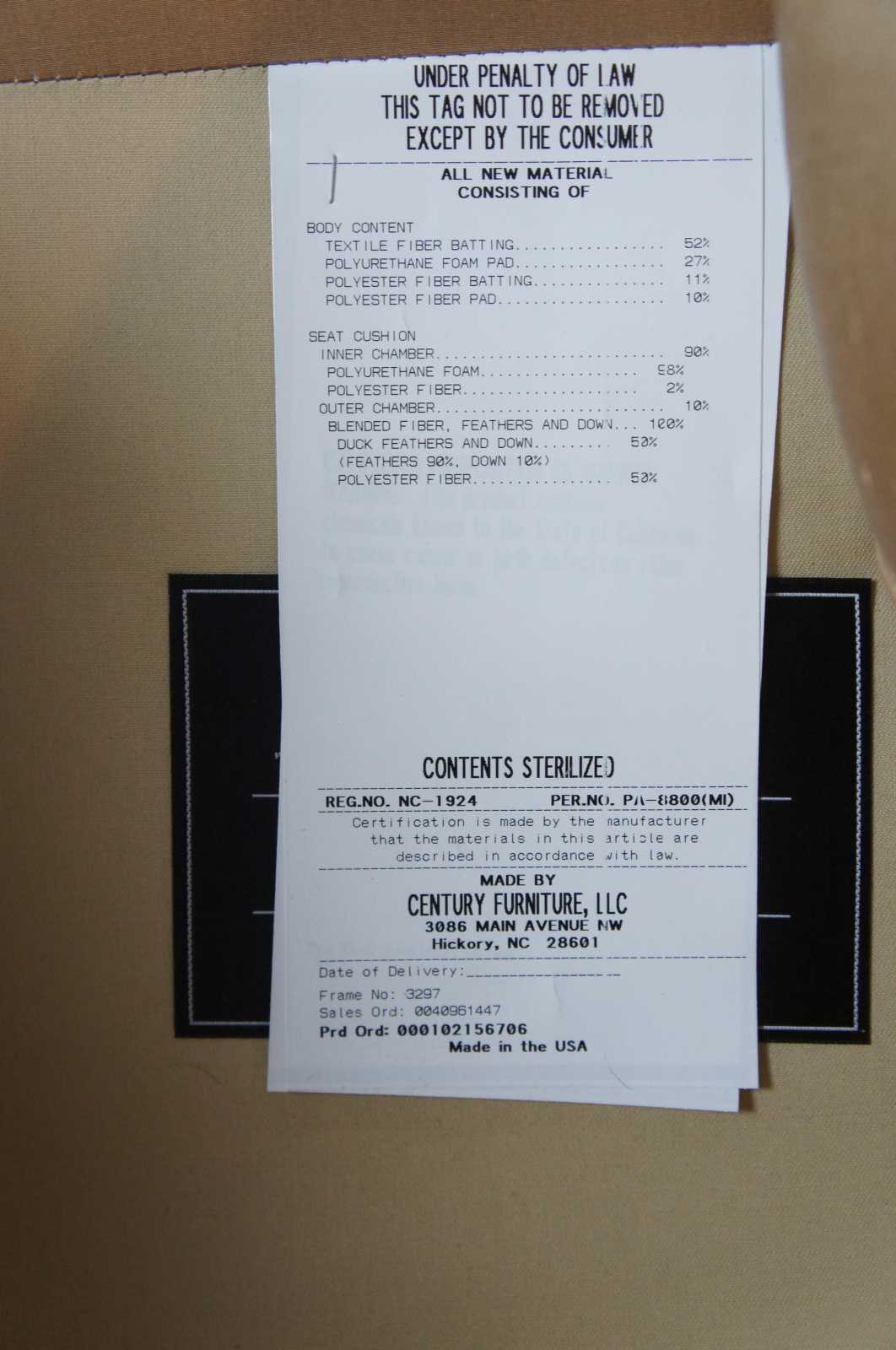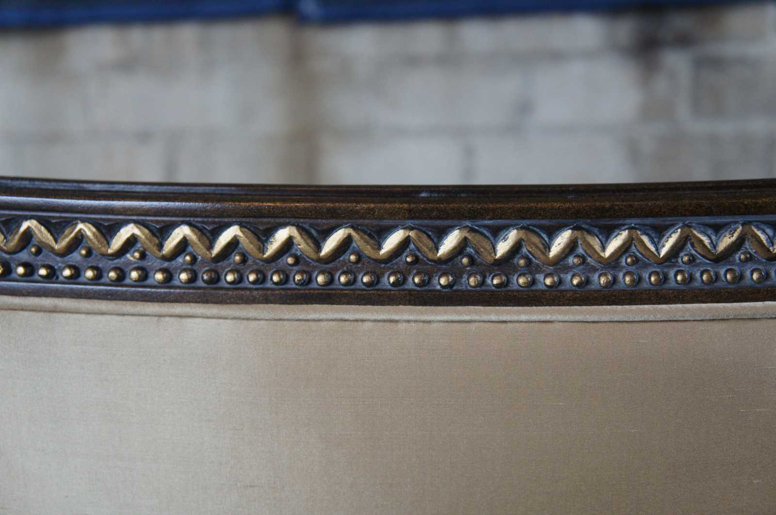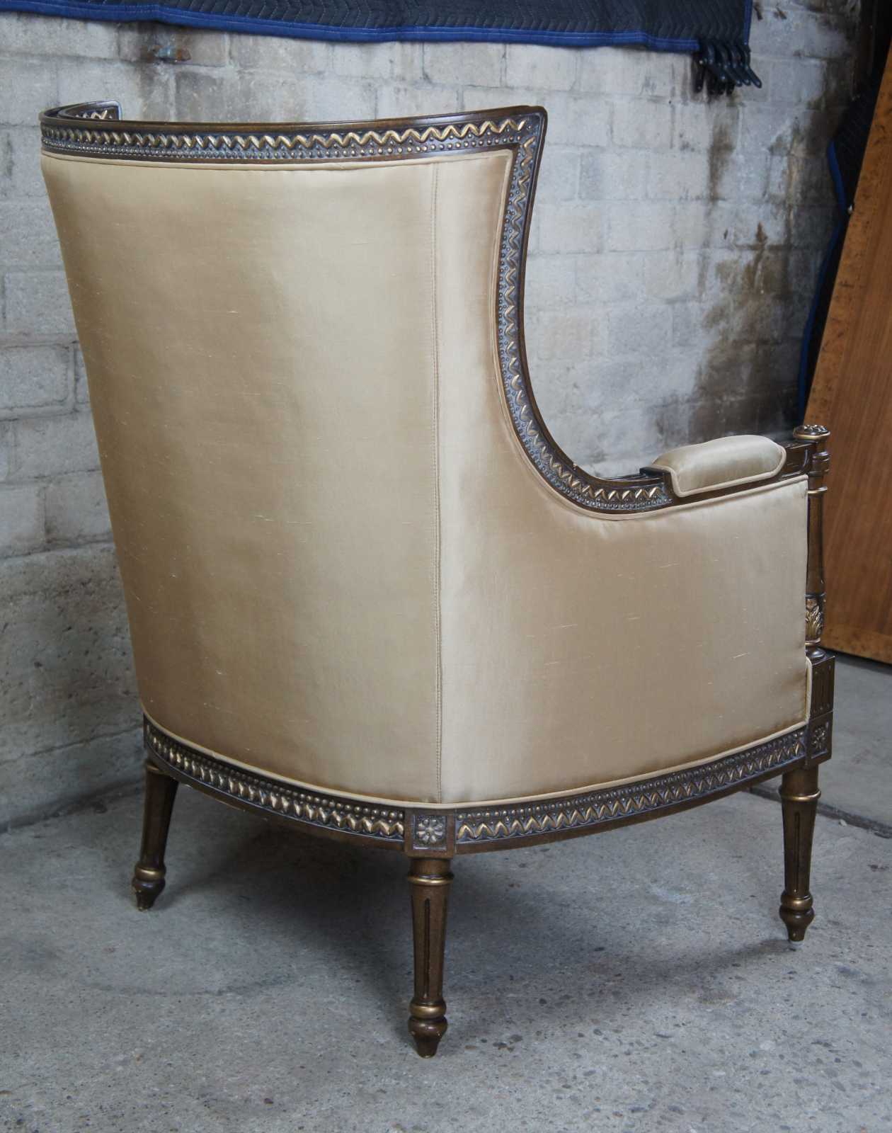 Century Furniture Tufted Wing Back Chair. Classic Louis XV Styling with an intricately carved frame over reeded and tapered legs leading to arrow feet.
