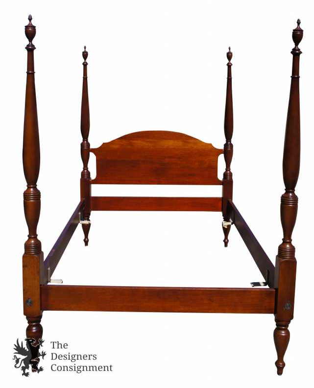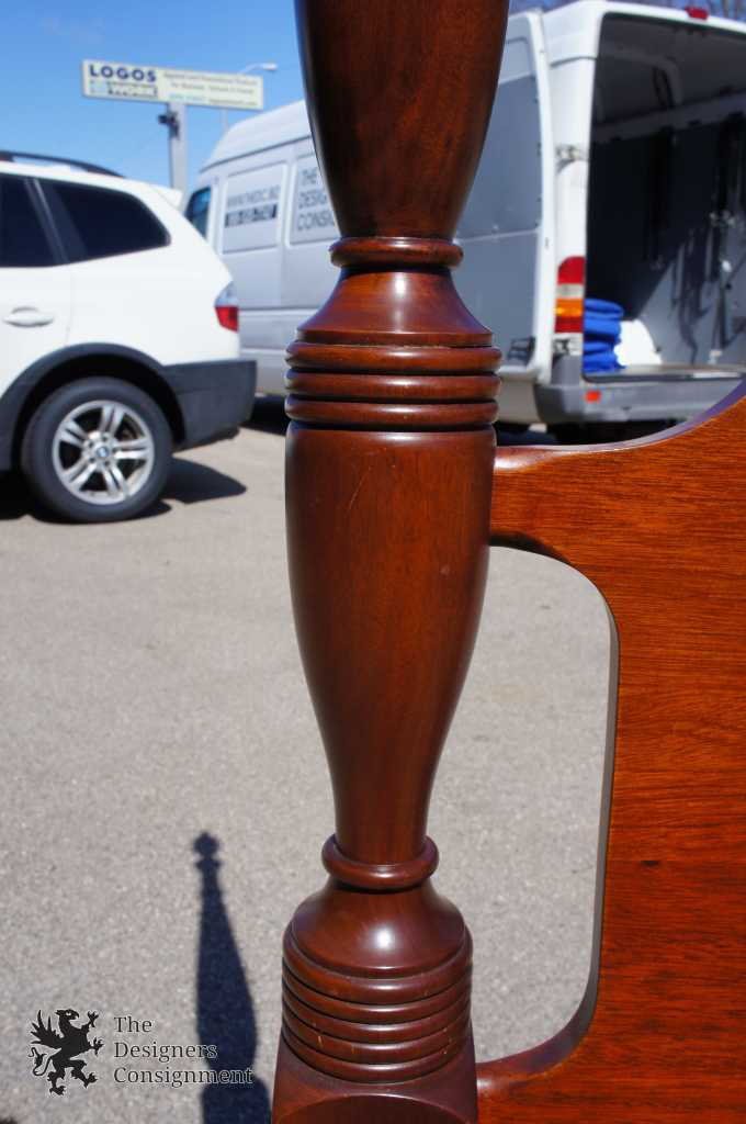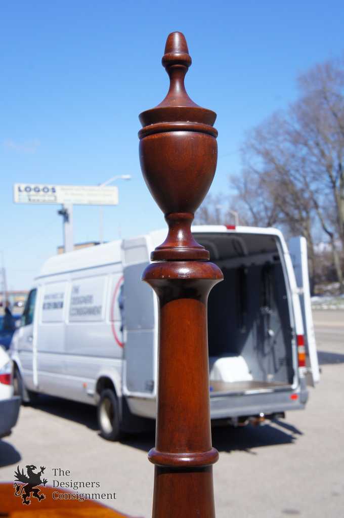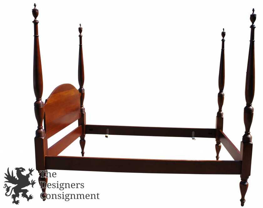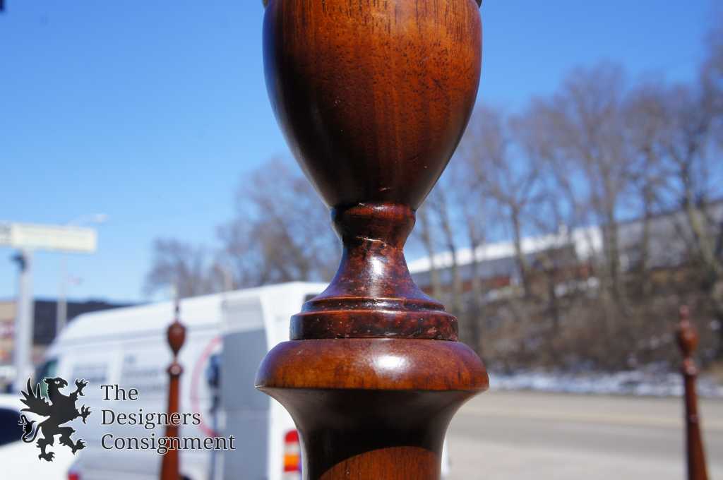 A beautiful 4 poster solid Mahogany Bed by Craftique. Craftique was founded in 1946 by L.P. Best, who sold the company to Pulaski Furniture in 1988. This bed features turned post with carved accents leading to trophy finials. A great addition to any setting.