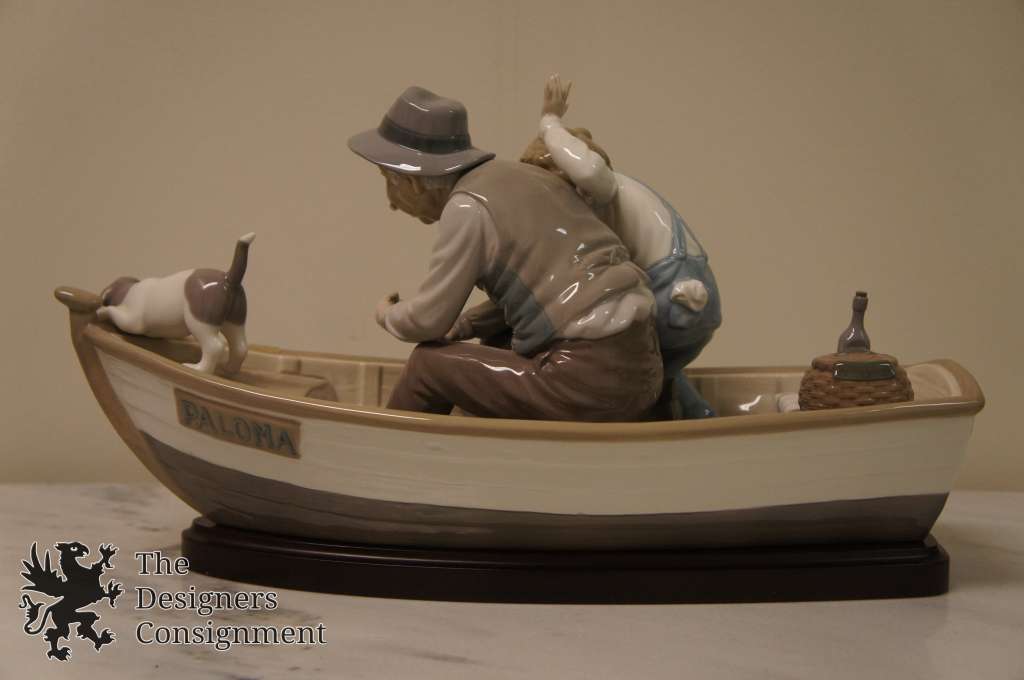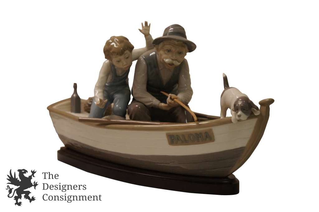 Vintage Lladro Spain #5215 "Fishing with Gramps" Figurine 16" W/ Wooden Stand
