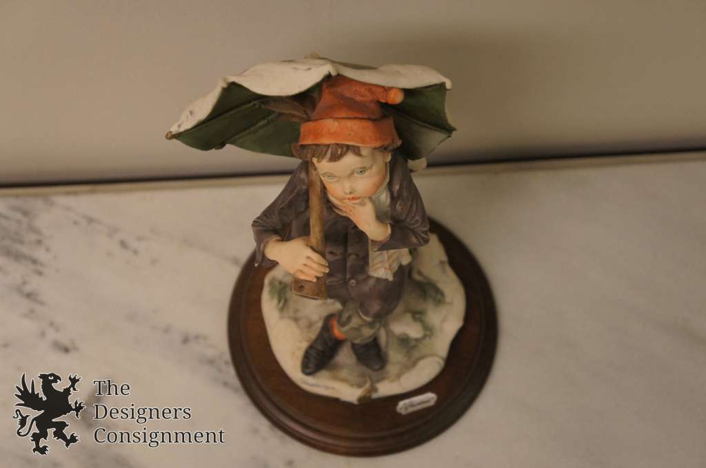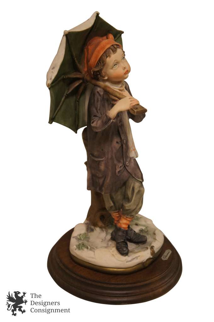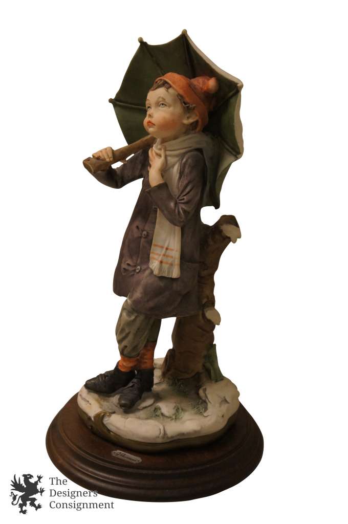 Giuseppe Armani Capodimonte Figurine Boy with Umbrella Winter Italy 12" Vintage